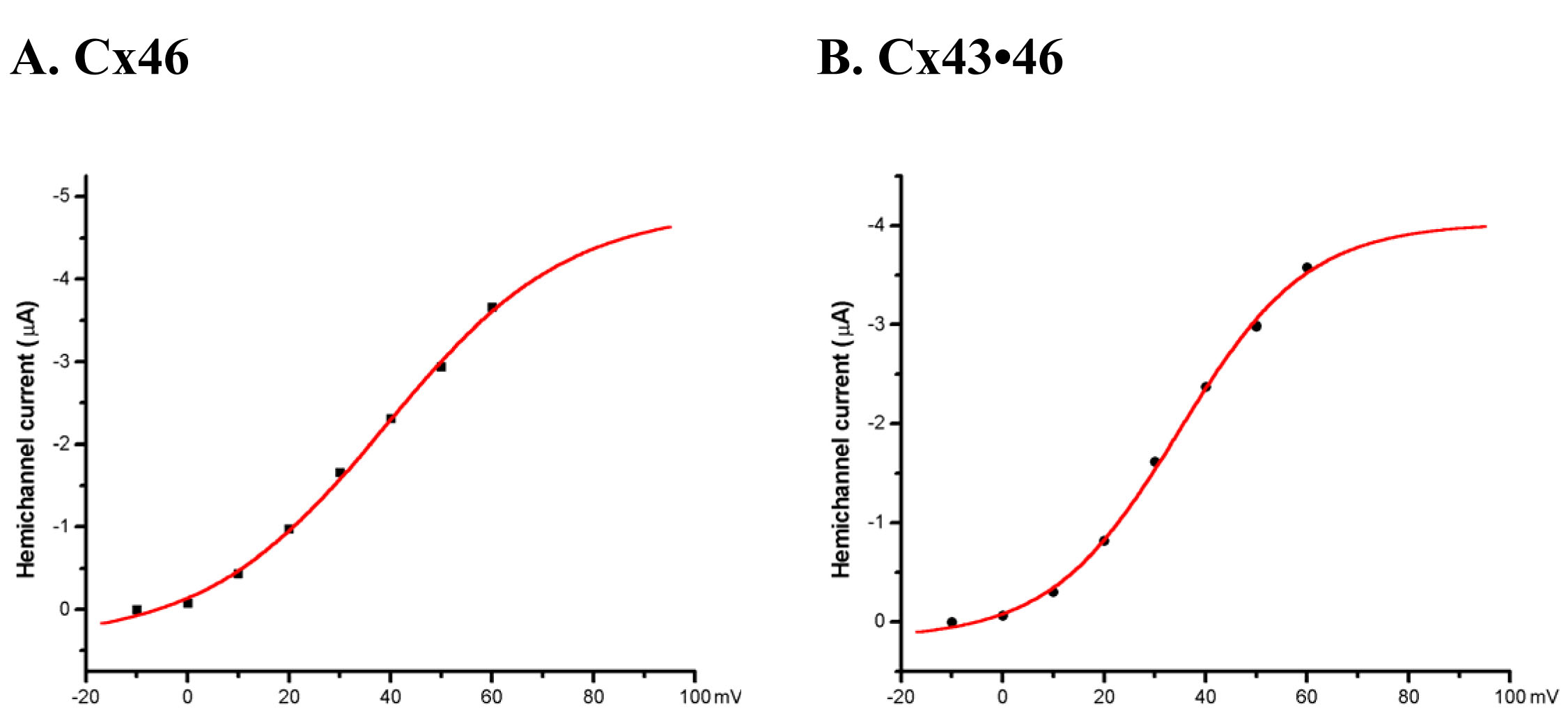 describing the hemicurrent recorded from oocytes expressing Cx43•46 has