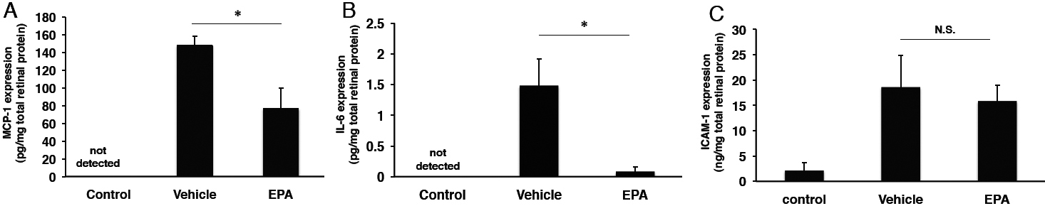 ICAM-1 (C) in the retina from vehicle-treated normal control
