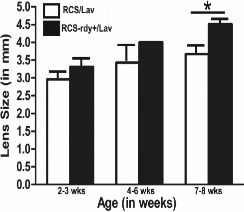 increase in lens equatorial diameter with age in the dystrophic RCS/Lav