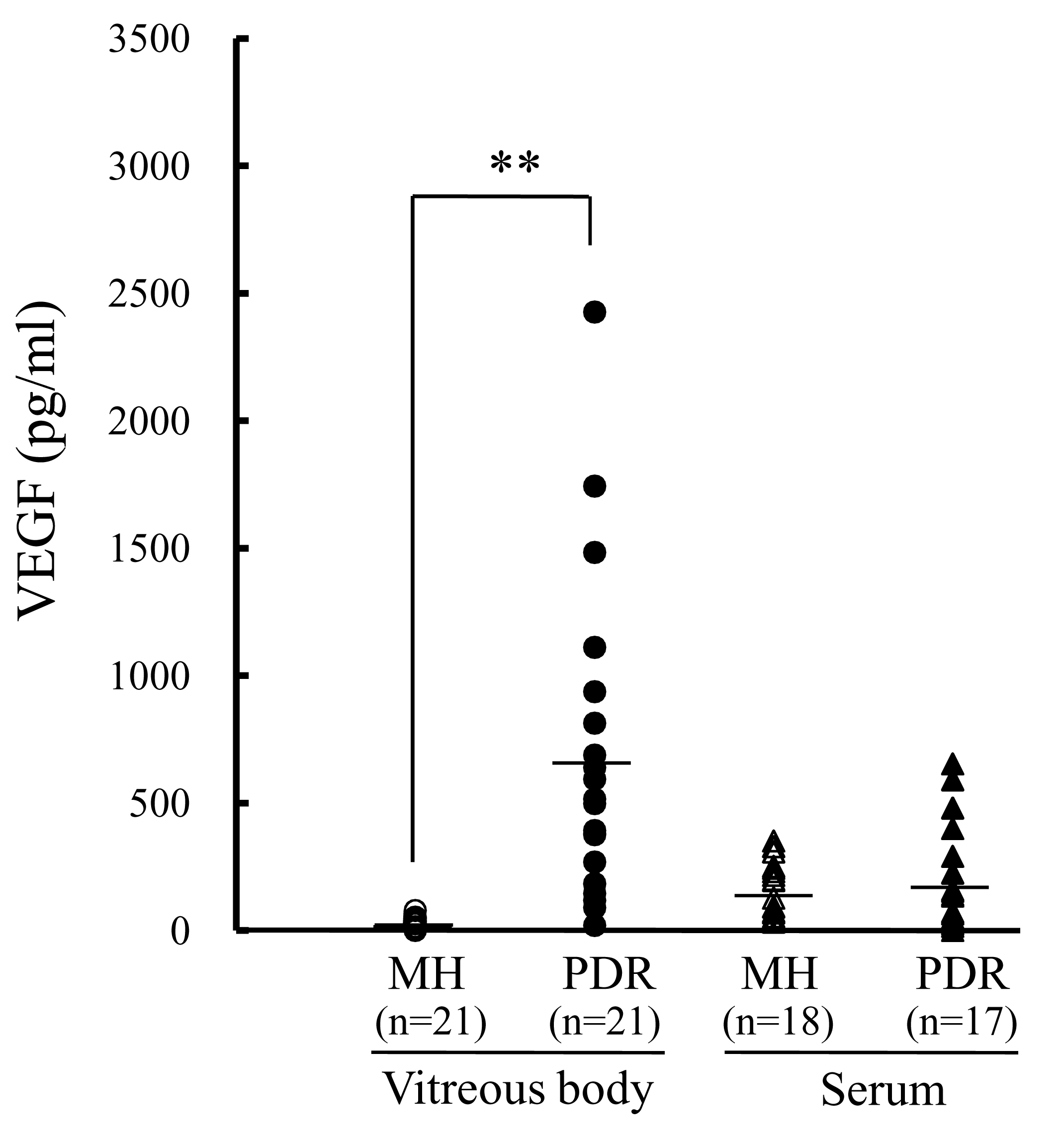 diabetic retinopathy and macular hole patients. The VEGF concentrations