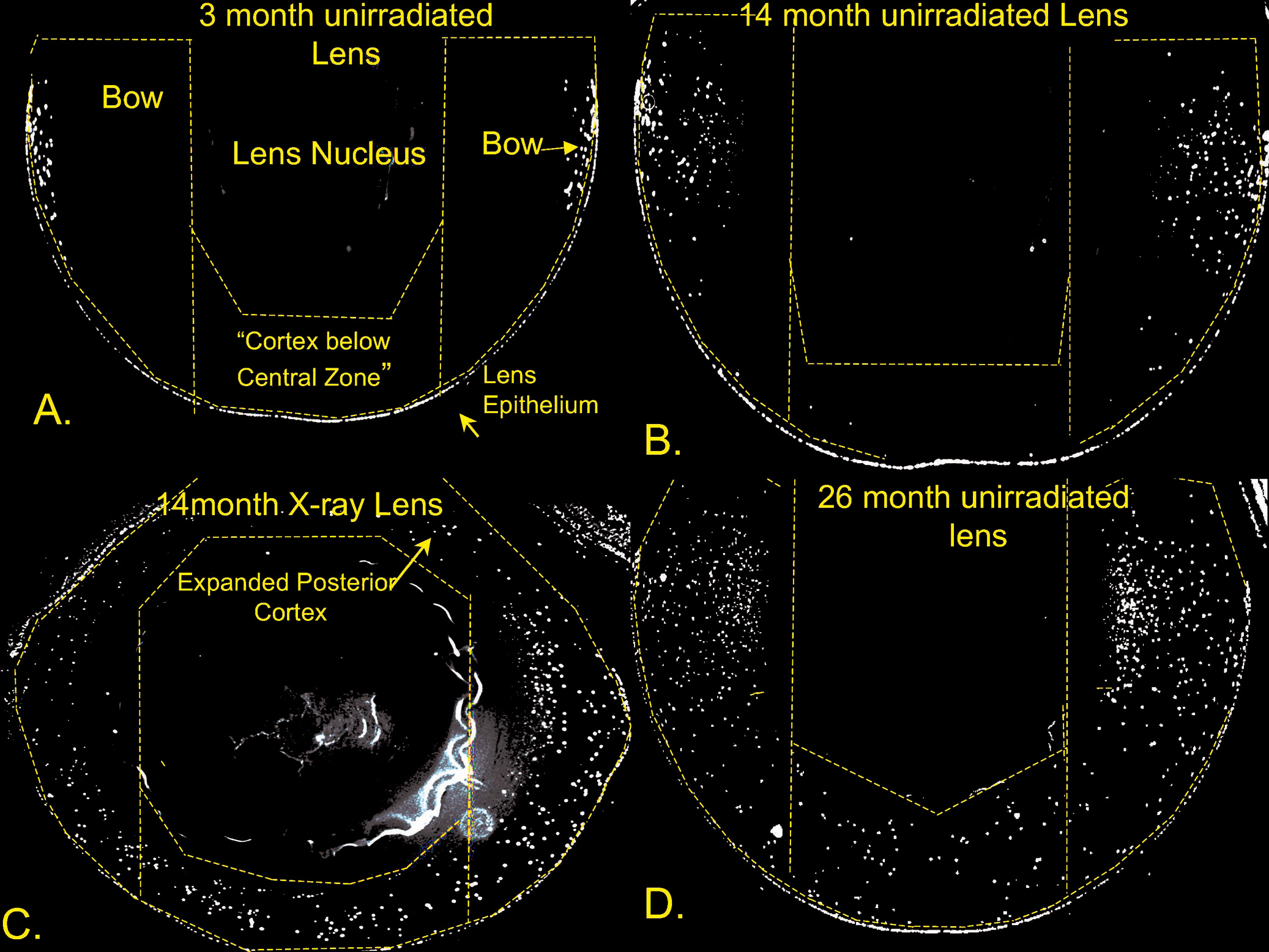 and lenses from mice X-irradiated at 3-month of age. Panel