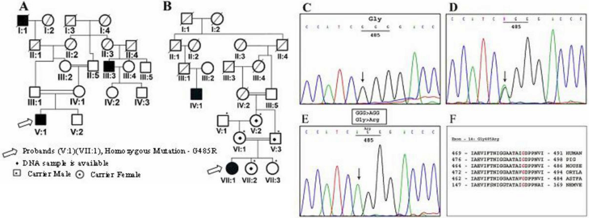 novel mutation Gly485Arg. A: Pedigree obtained from family 11. B: