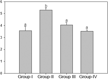 above the bars denote that data are significantly different among the groups.