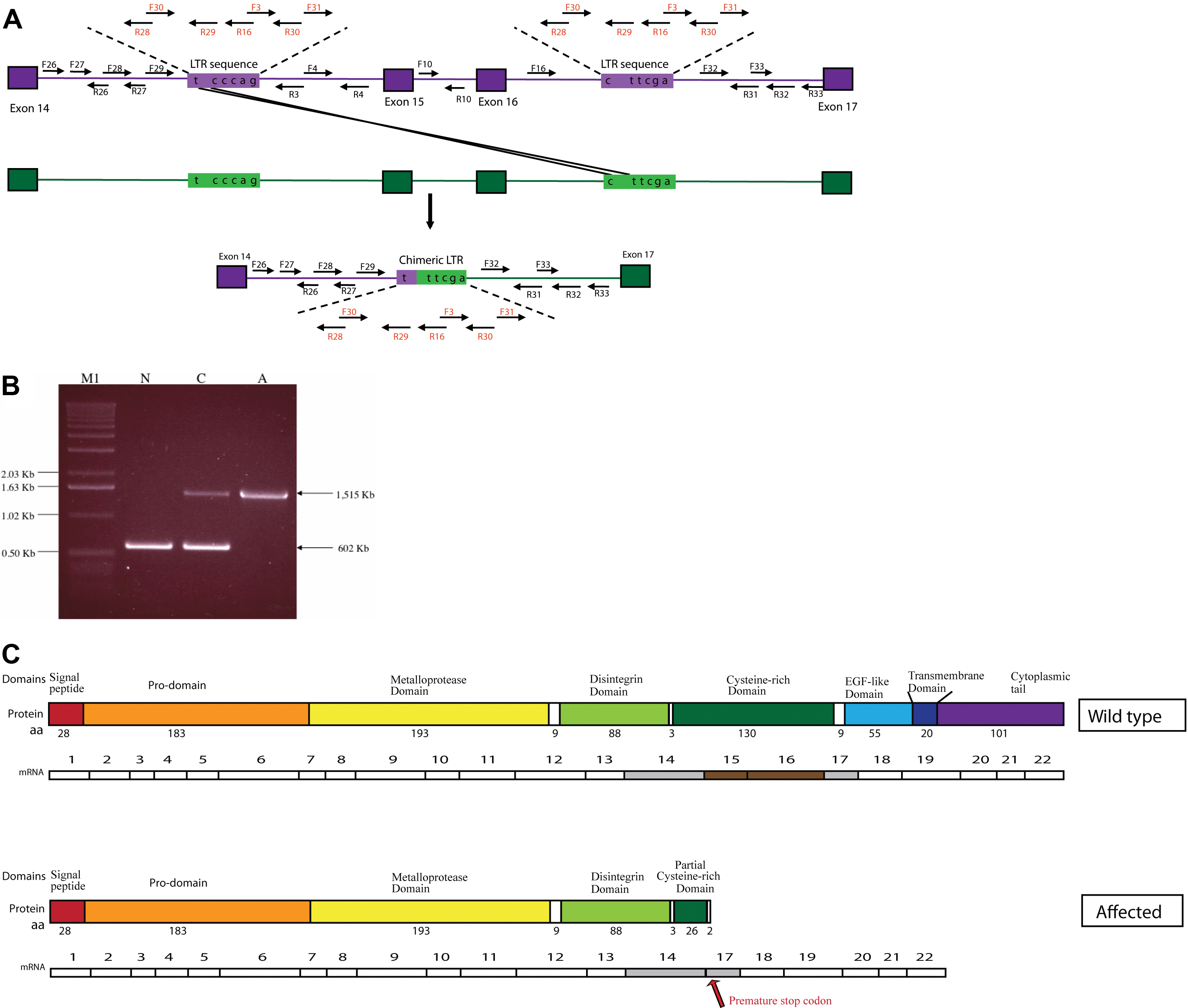 of the canine ADAM9 genomic sequence, aligning the normal and
