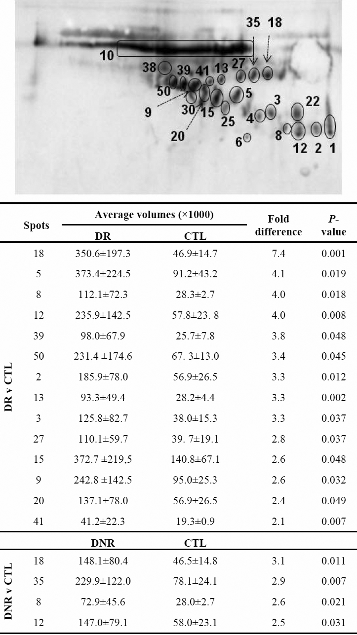 Figure 5. Image analysis to detect expression differences of the individual AGE modified protein spot between the groups. Only the spots