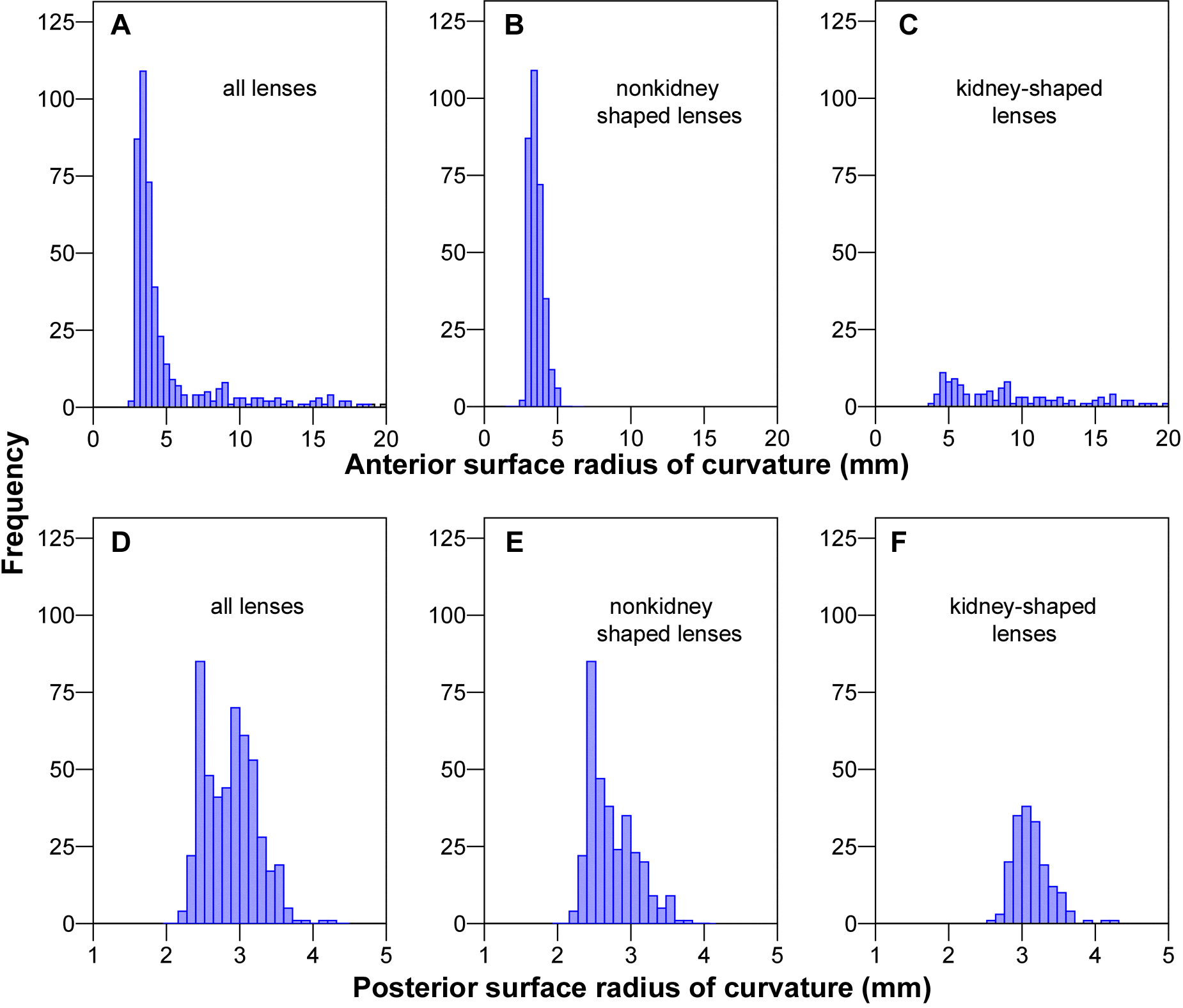 posterior surface radius of curvature. Panels A and D