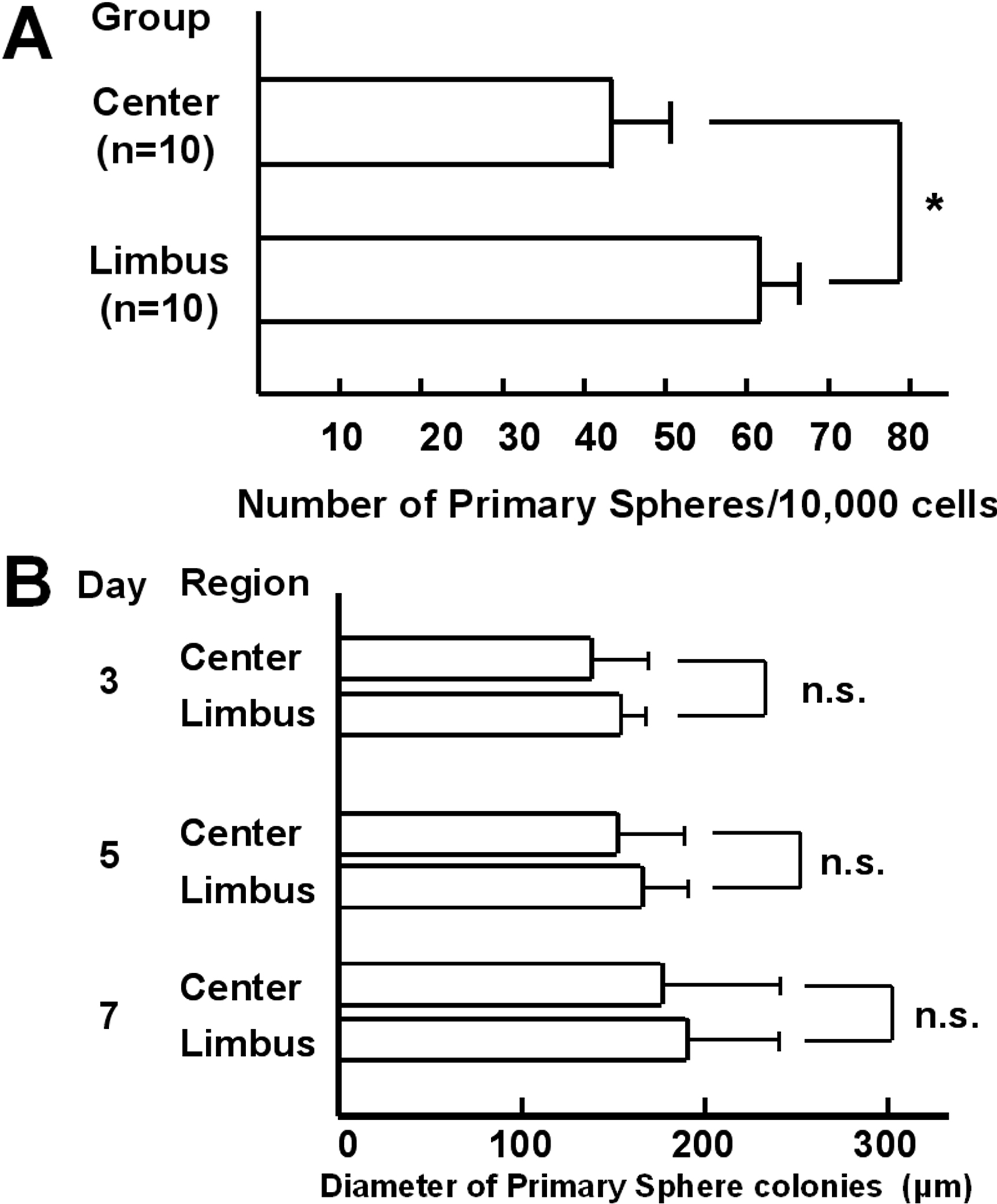 number of spheres obtained from limbal CEC (n=10) was significantly