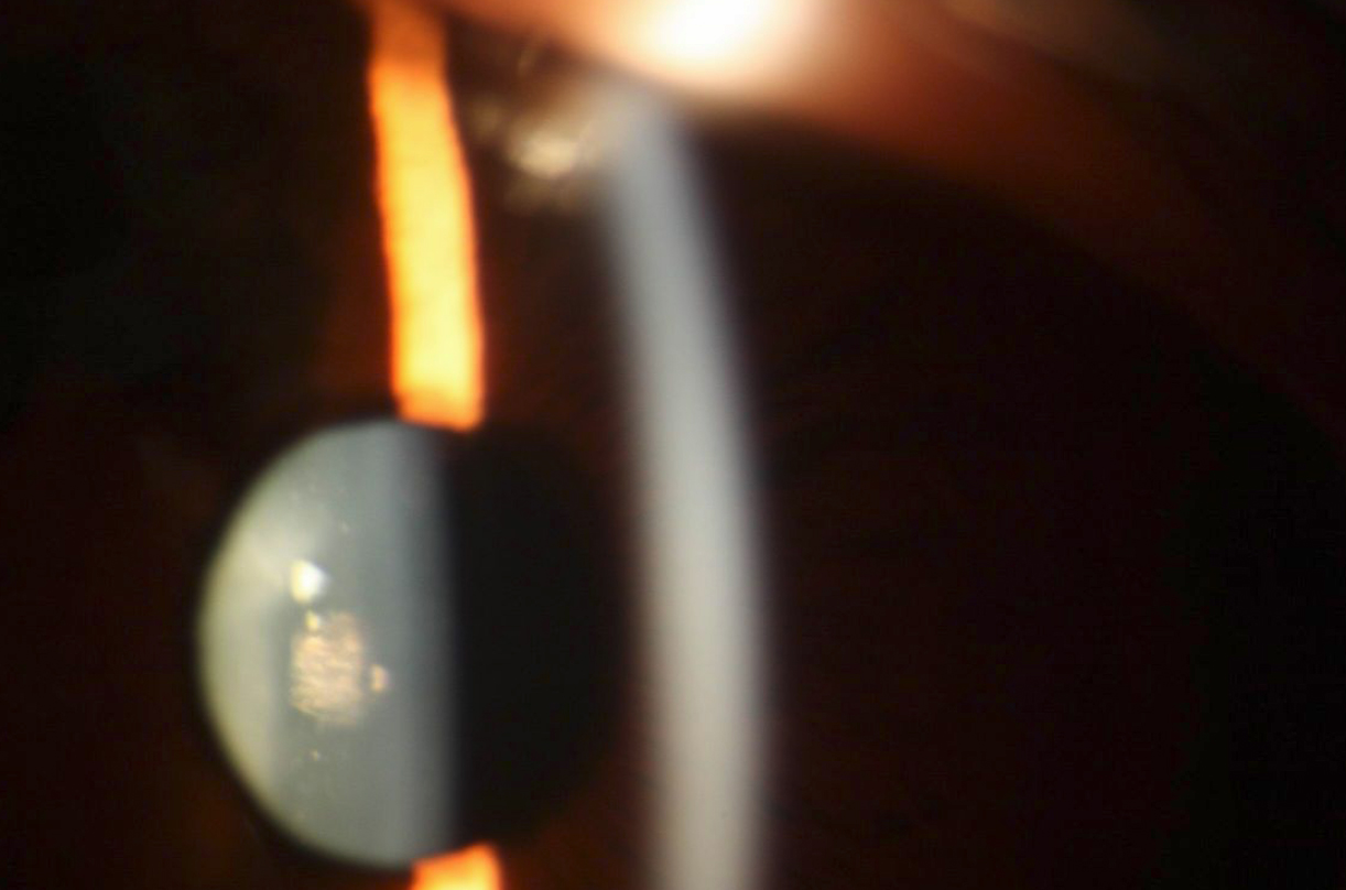 Slit-lamp photograph of the posterior polar cataract taken from patient IV:4 at 25 years of age.