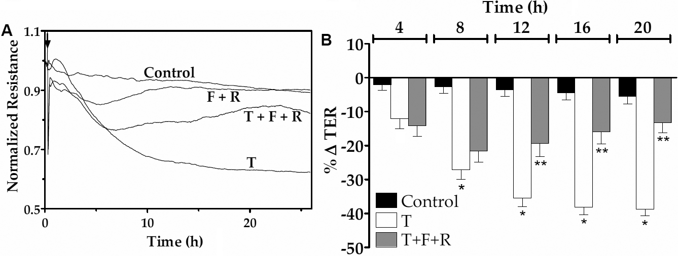 Co-treatment with F and R opposes the (TNF-α)-induced reduction in TER