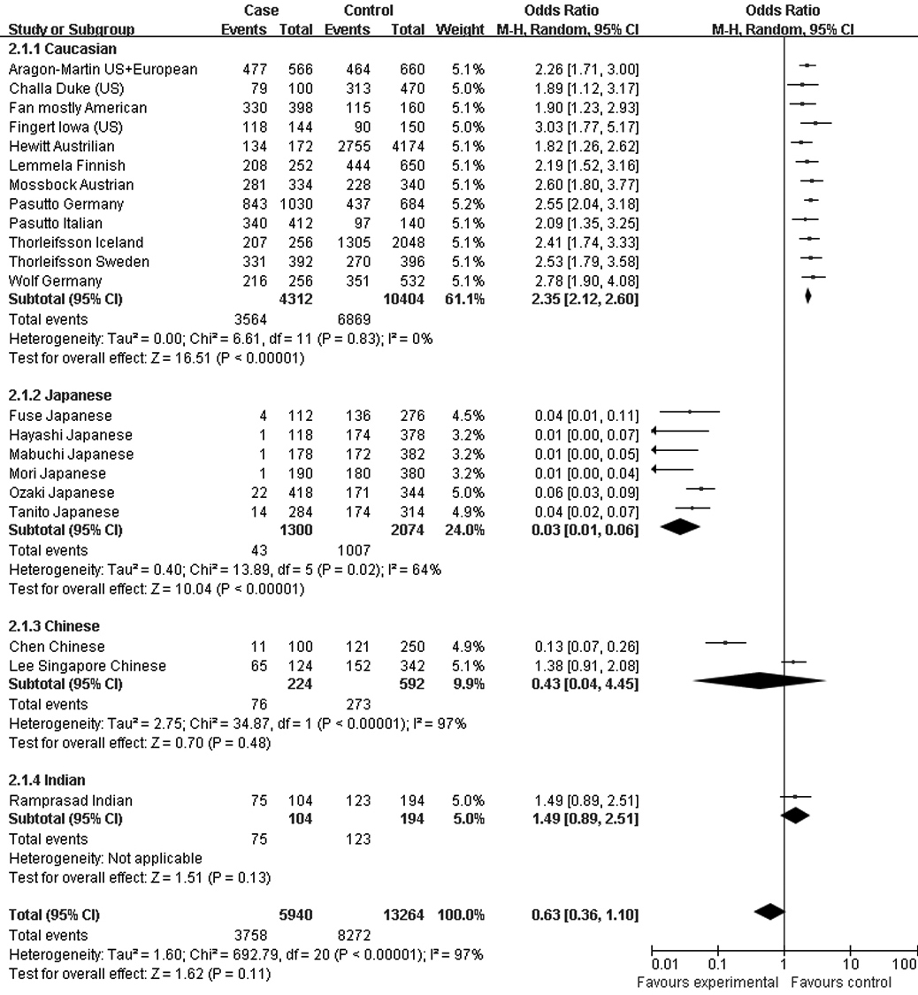 OR with its corresponding 95% CI. Subgroup meta-analysis indicated that