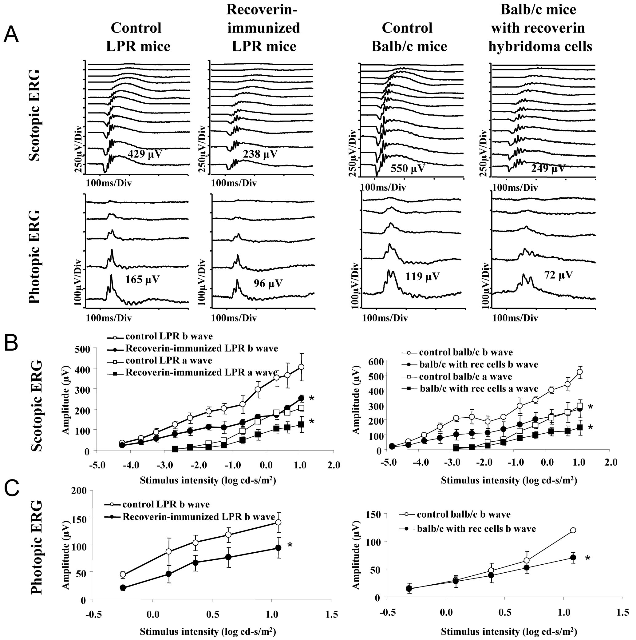 mice (LPR) mice and balb/cJ mice injected with recoverin hybridoma