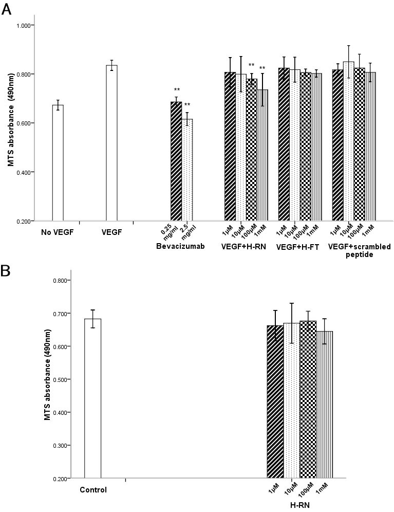 by bevacizumab and H-RN. An H-RN concentration of 1 mM inhibited the VEGF-induced response significantly. However, the inhibitory