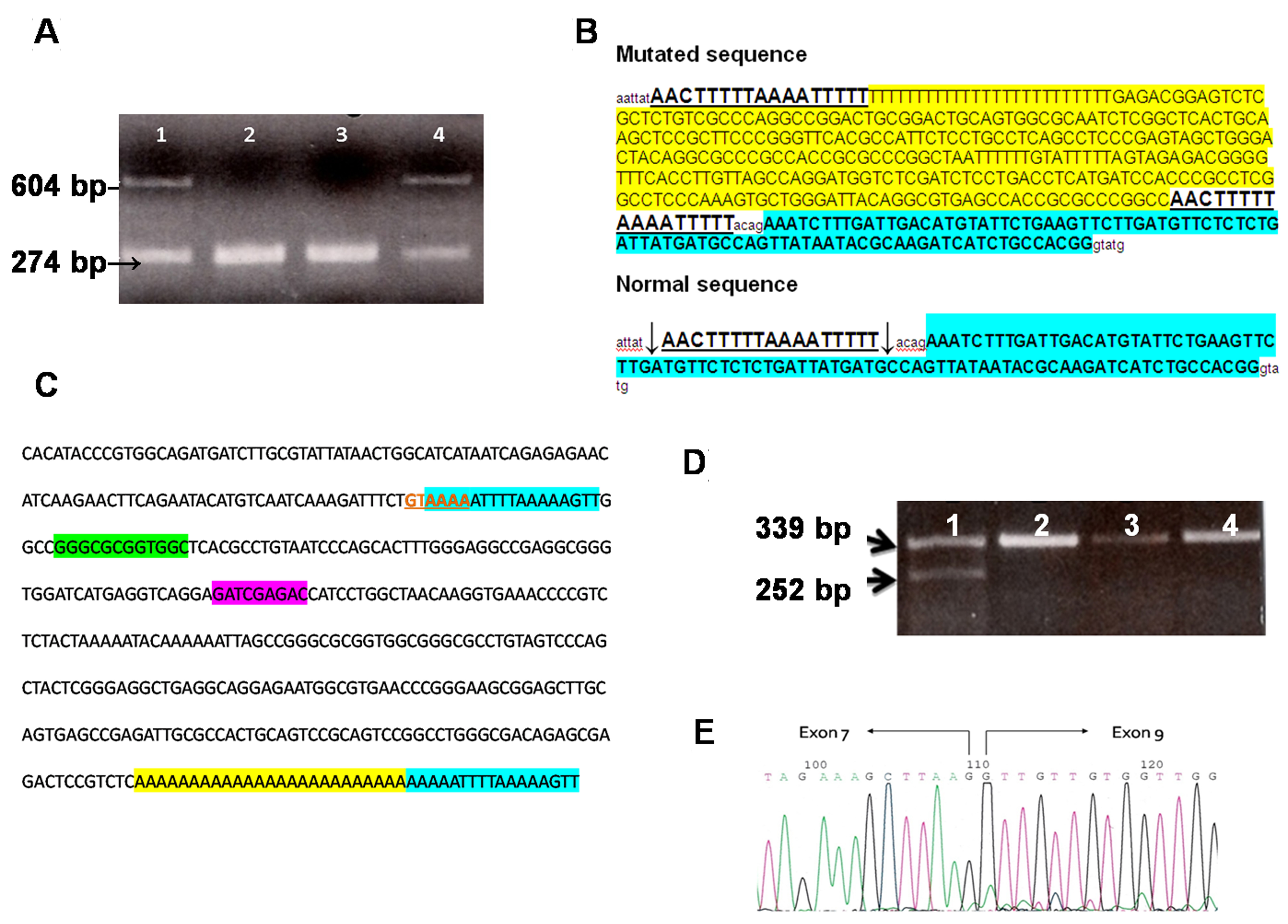 of allele with Alu insertion and normal allele. Exon sequence is shown
