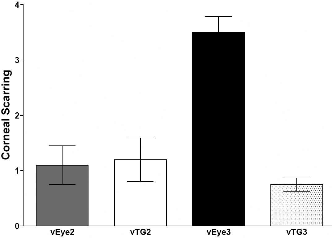 Figure 4. Corneal scarring in mice infected with recombinant viruses. Corneal scarring in surviving mice described in