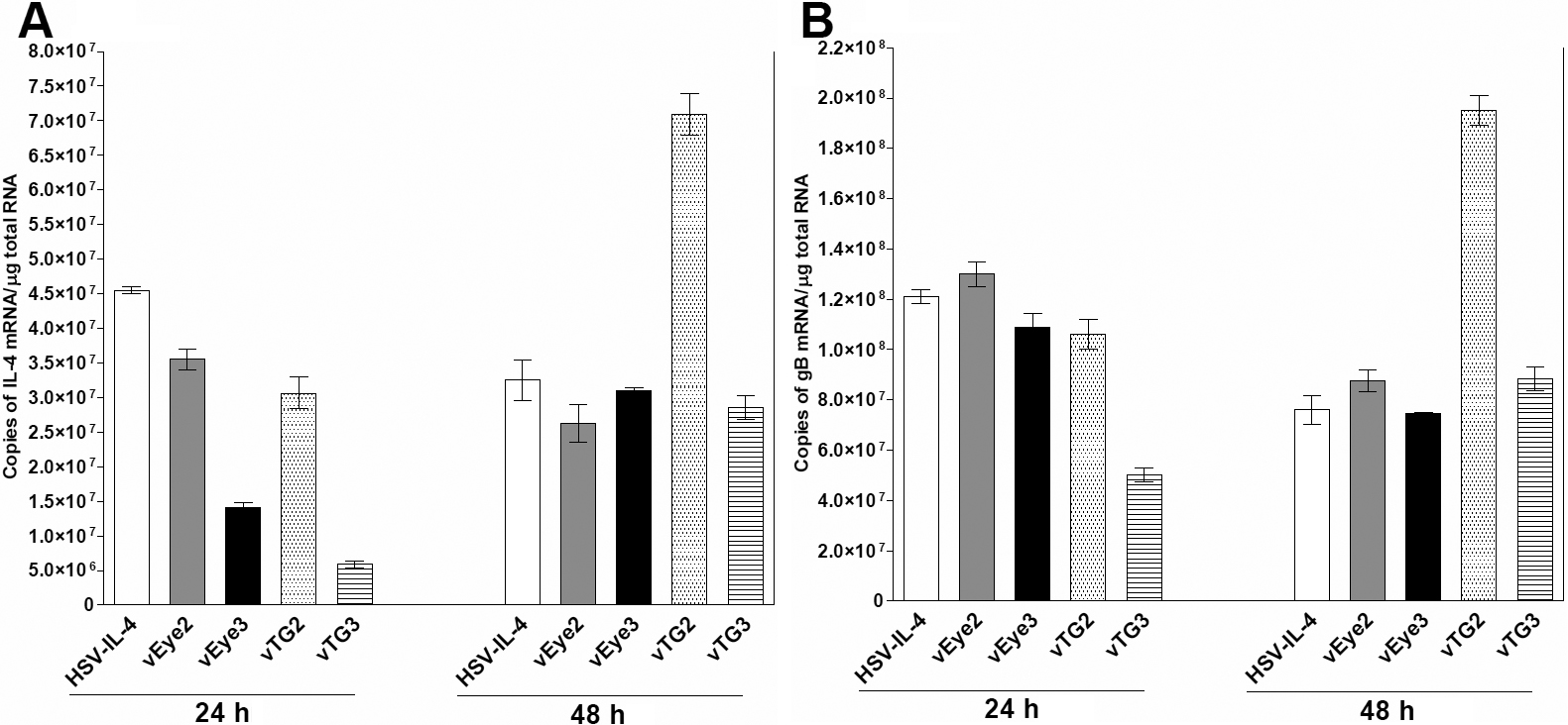 HSV-IL-4, vEye2, vEye3, vTG2, or vTG3. Total RNA was isolated 24 and