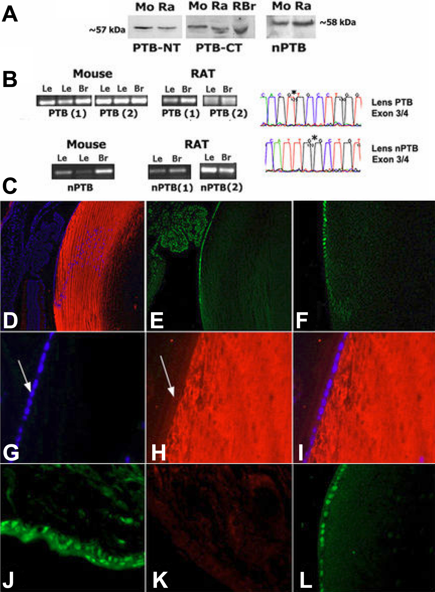 in lens. C: Immunofluorescence detection of PTB and nPTB in the
