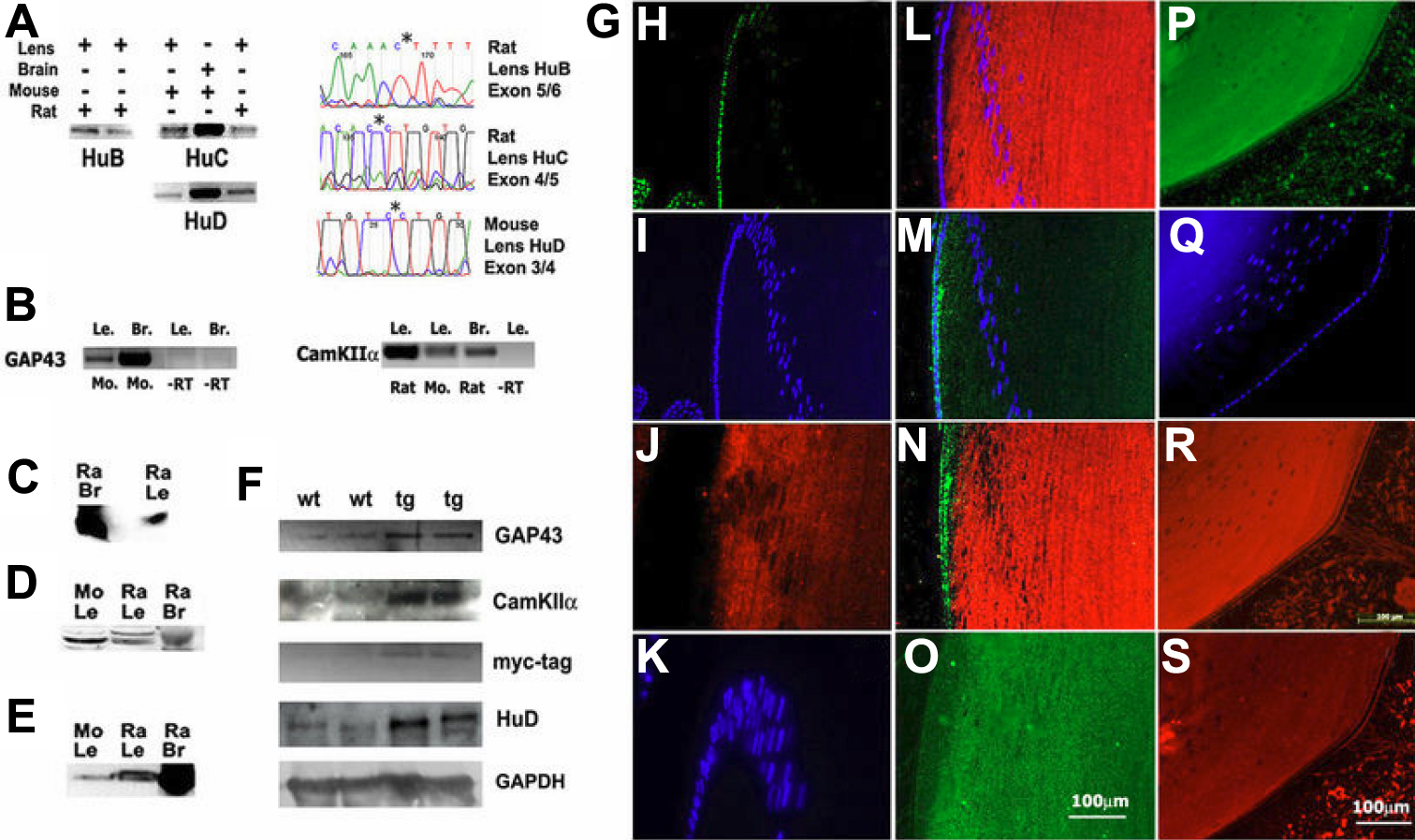 anti-HuB/C/D). E: GAP43 protein detected in wt lens and brain. F: