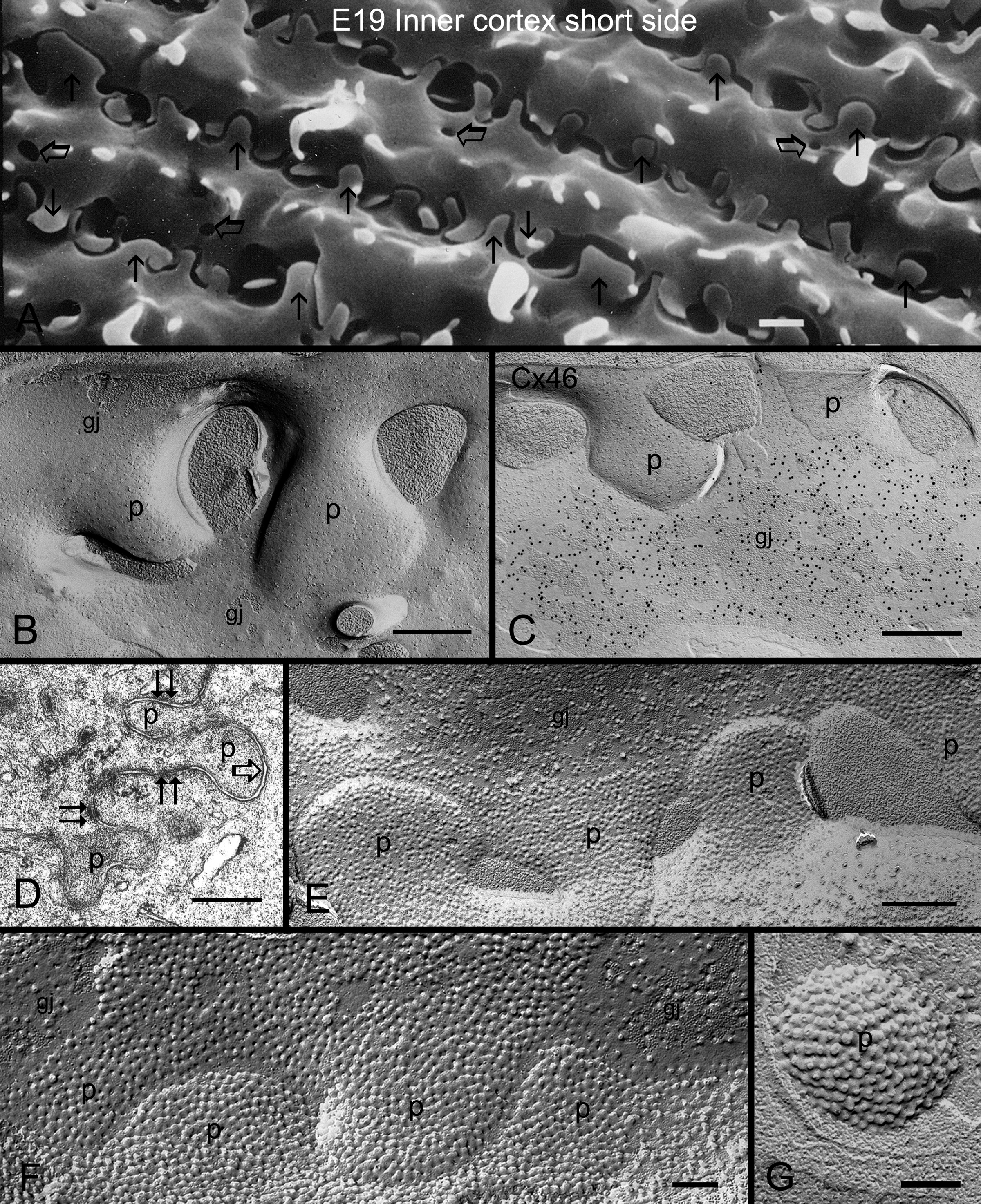 for the Cx46 antibody in the protrusions (p). Instead, Cx46 antibody