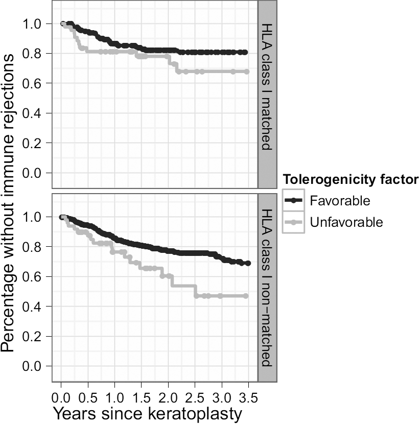 rejection free survival for the 975 patients in cohort 2. The HLA-class