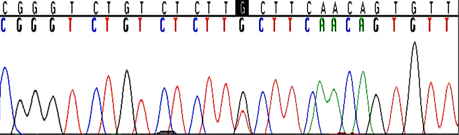 The chromatogram of a patient harboring the G32T mutation. The black square marks the position of the mutation.