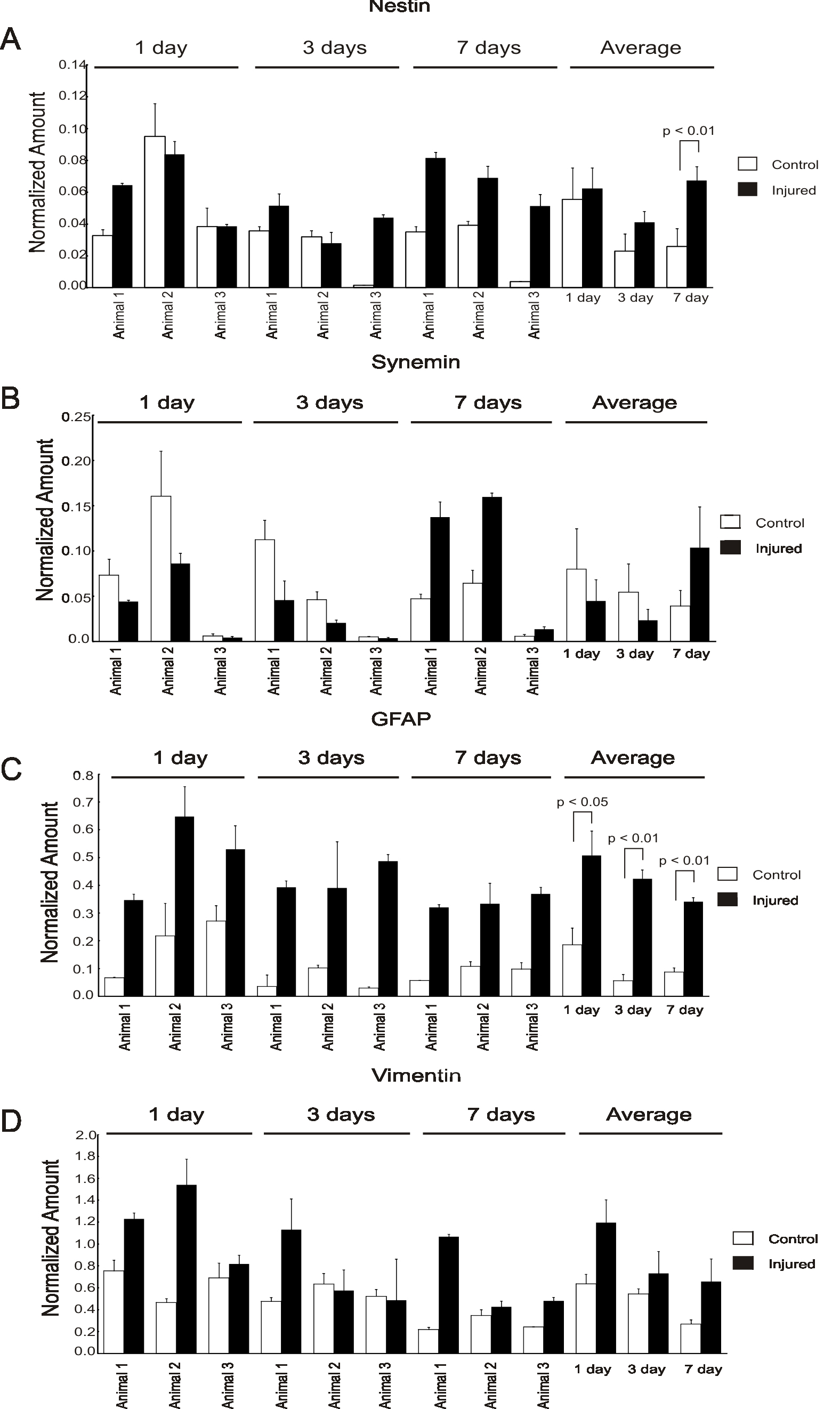 expression for nestin (A), synemin (B), glial fibrillary