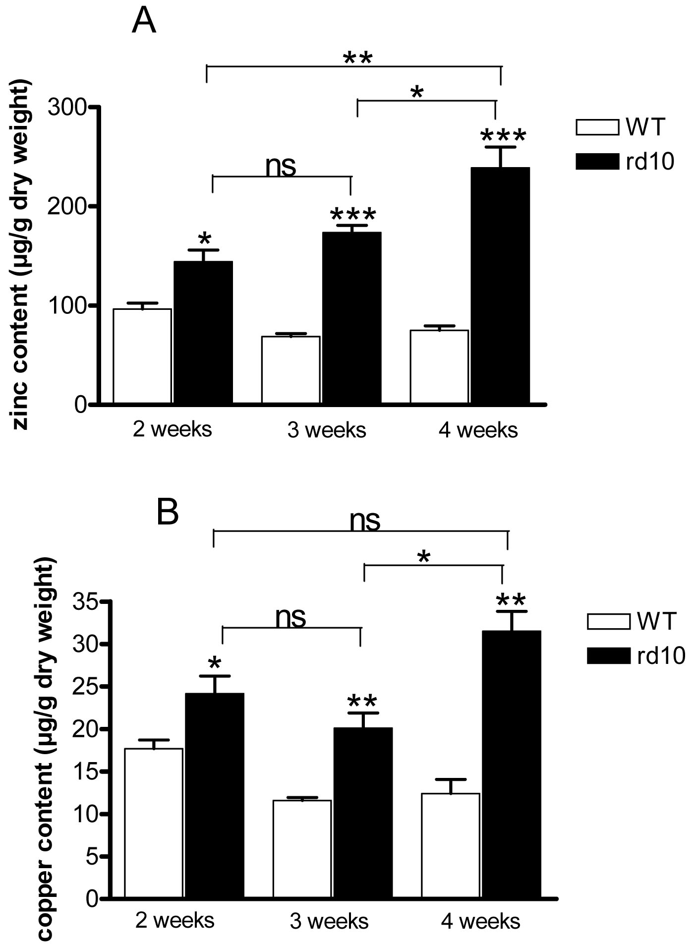 (PIXE) microanalysis of zinc and copper in 2-, 3-, and 4-week-old rd10