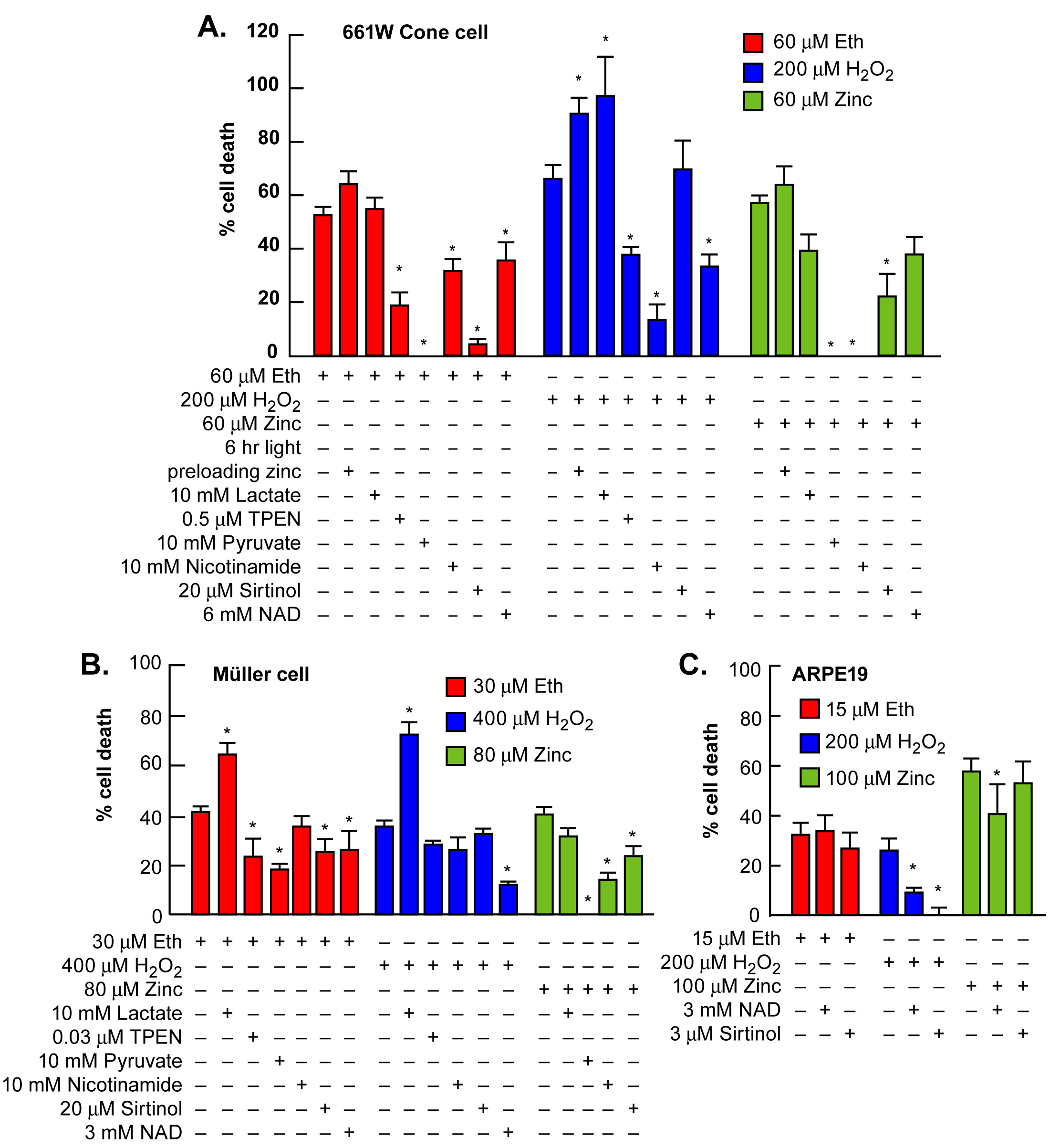 zinc toxicity in the 661 W cone photoreceptor cell line. B: