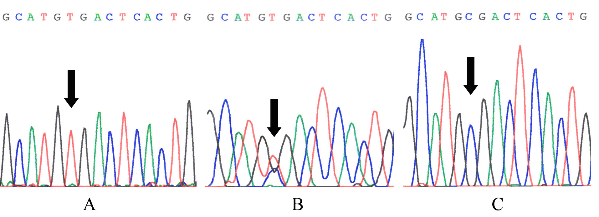 CGA > TGA in the proband and a carrier, altered the arginine codon