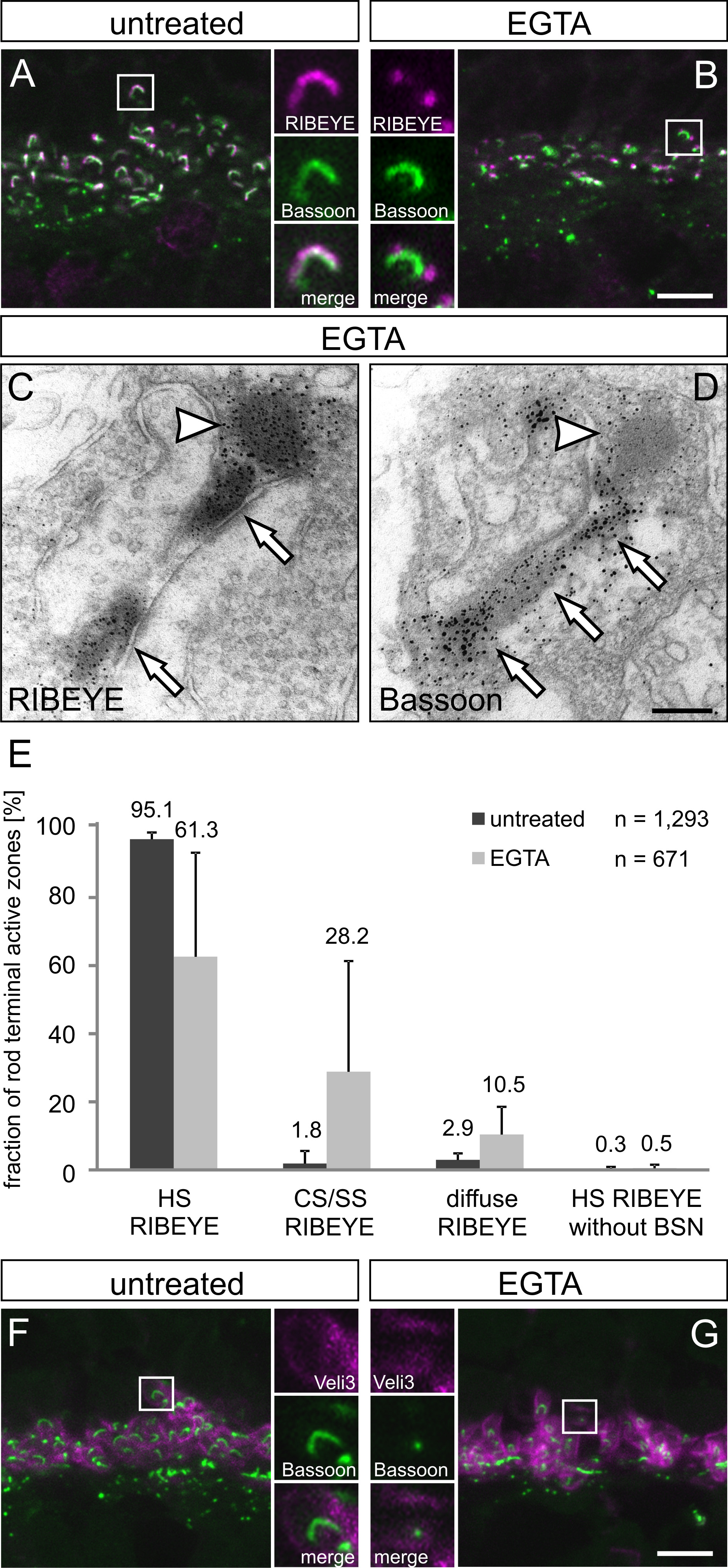 EGTA-treated retina. RIBEYE labeling (C) is found at the