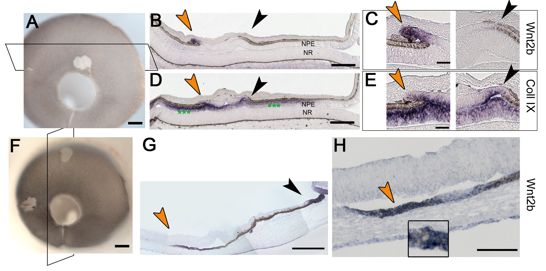 arrow). The inset panel shows the juxtaposition of Wnt2b expression and