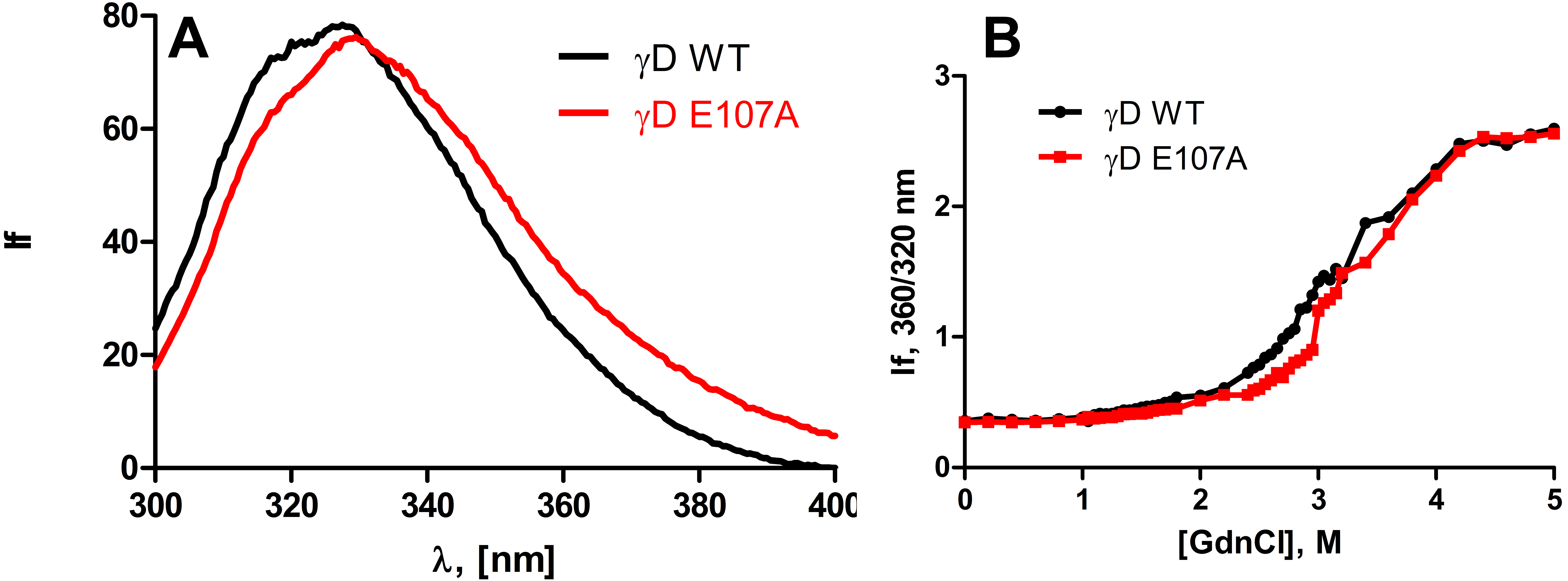 chloride–induced denaturation of wild-type and E107A HGDC. The relative