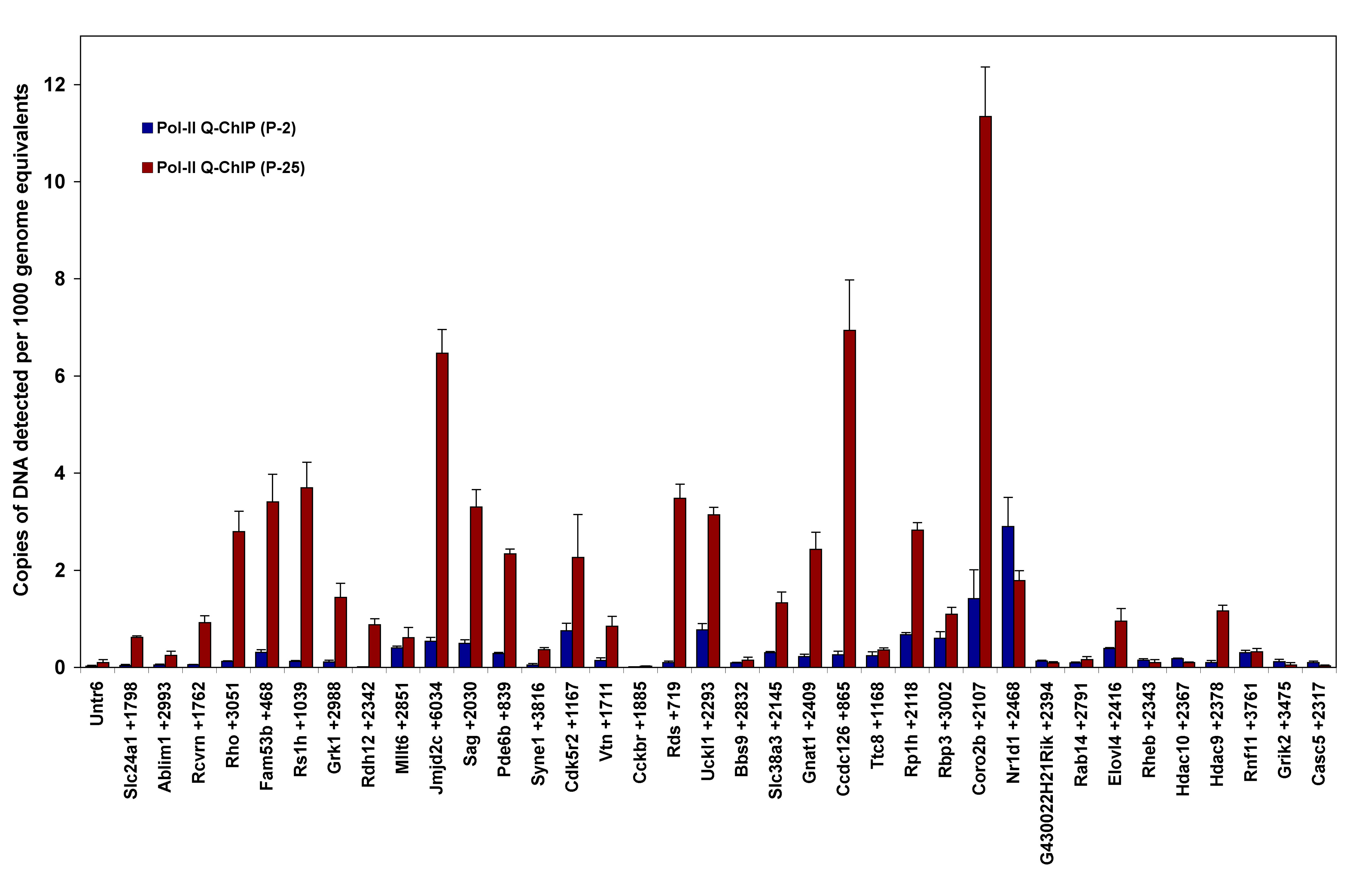 ChIP, graphed as copies of target DNA detected per 1,000 genome