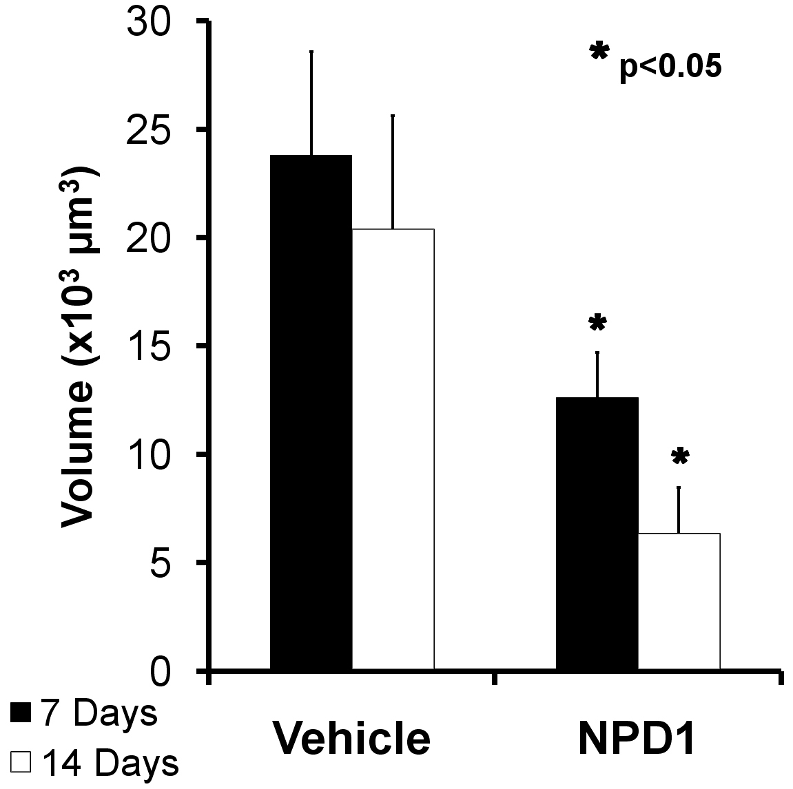 the black (control) and white (NPD1-treated) bars. Asterisks denote