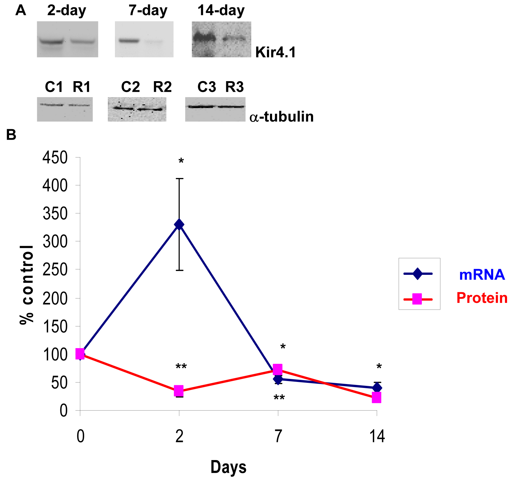 of Kir4.1 was adjusted to the mRNA copies of ACTB