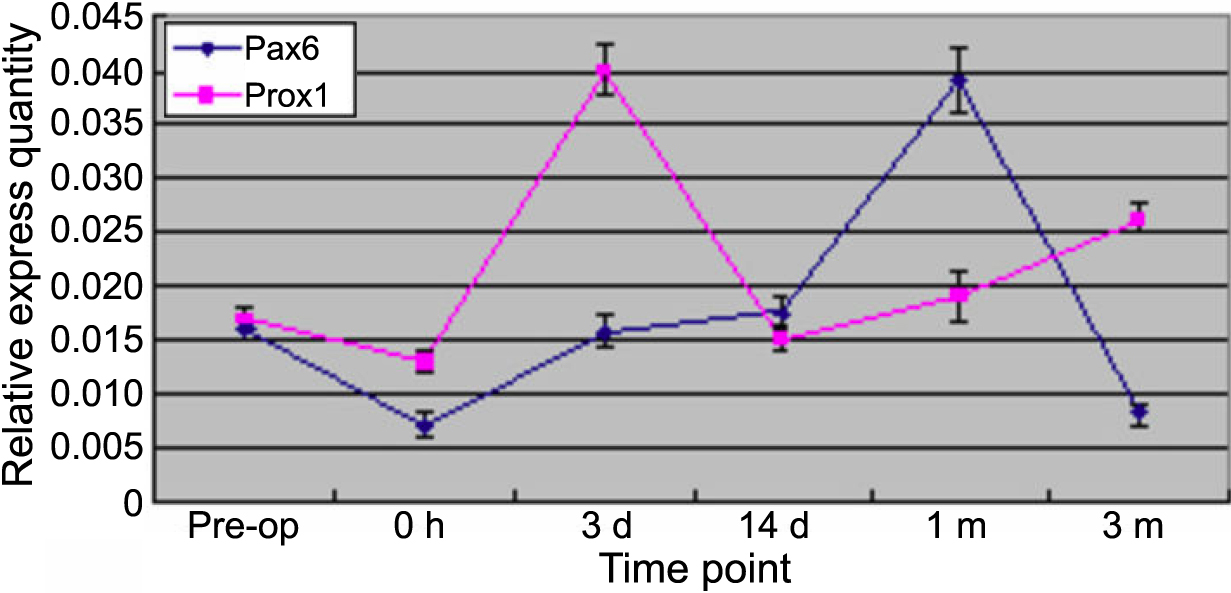 . The lens tissue is dissected at pre-operation, 0 h, 3 days, 7 days, 14 days, 1 month, and 3 months after ECLE and is assayed.