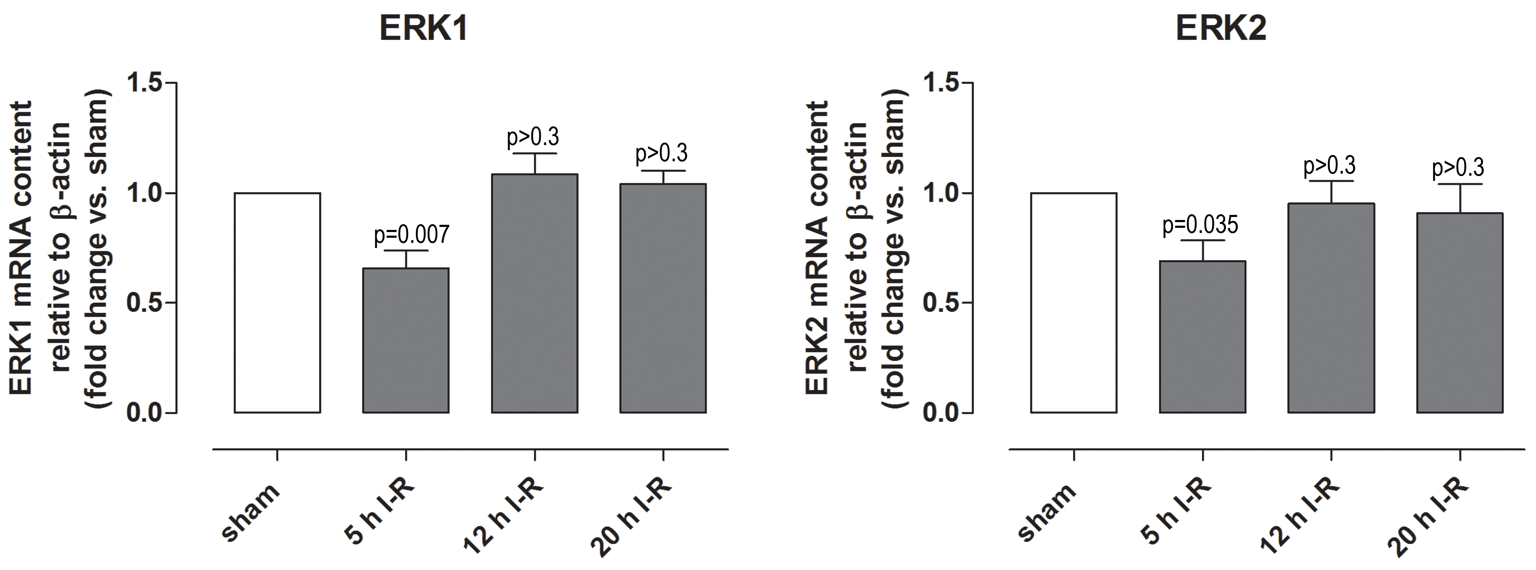kinase 1 and 2 (ERK1 and ERK2) mRNA levels in the neuroretina. ERK1