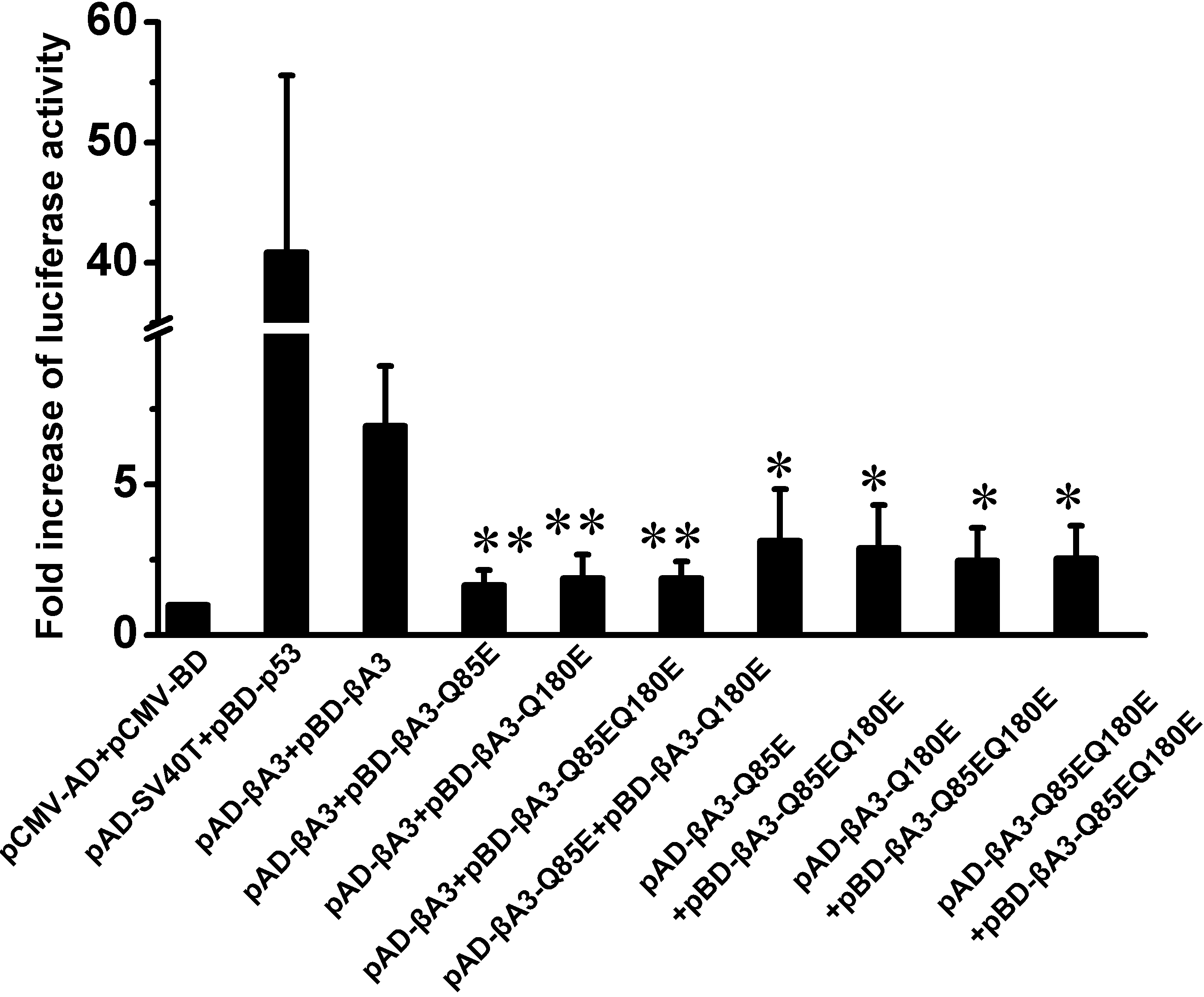 homodimer interaction (pAD-βA3+pBD-βA3). The asterisk indicates a