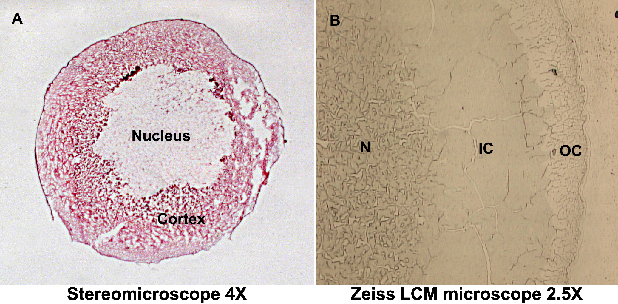 Cortex (IC), and Outer Cortex (OC), as seen during LCM with the