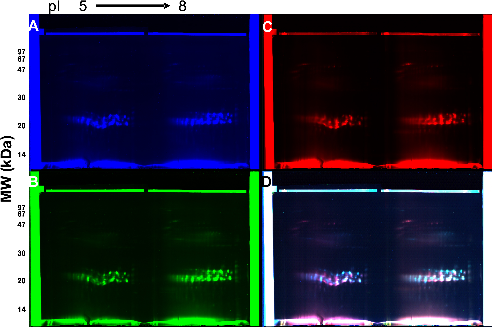 images from a 2D-DIGE of a 69-year-old human lens. Equal concentrations