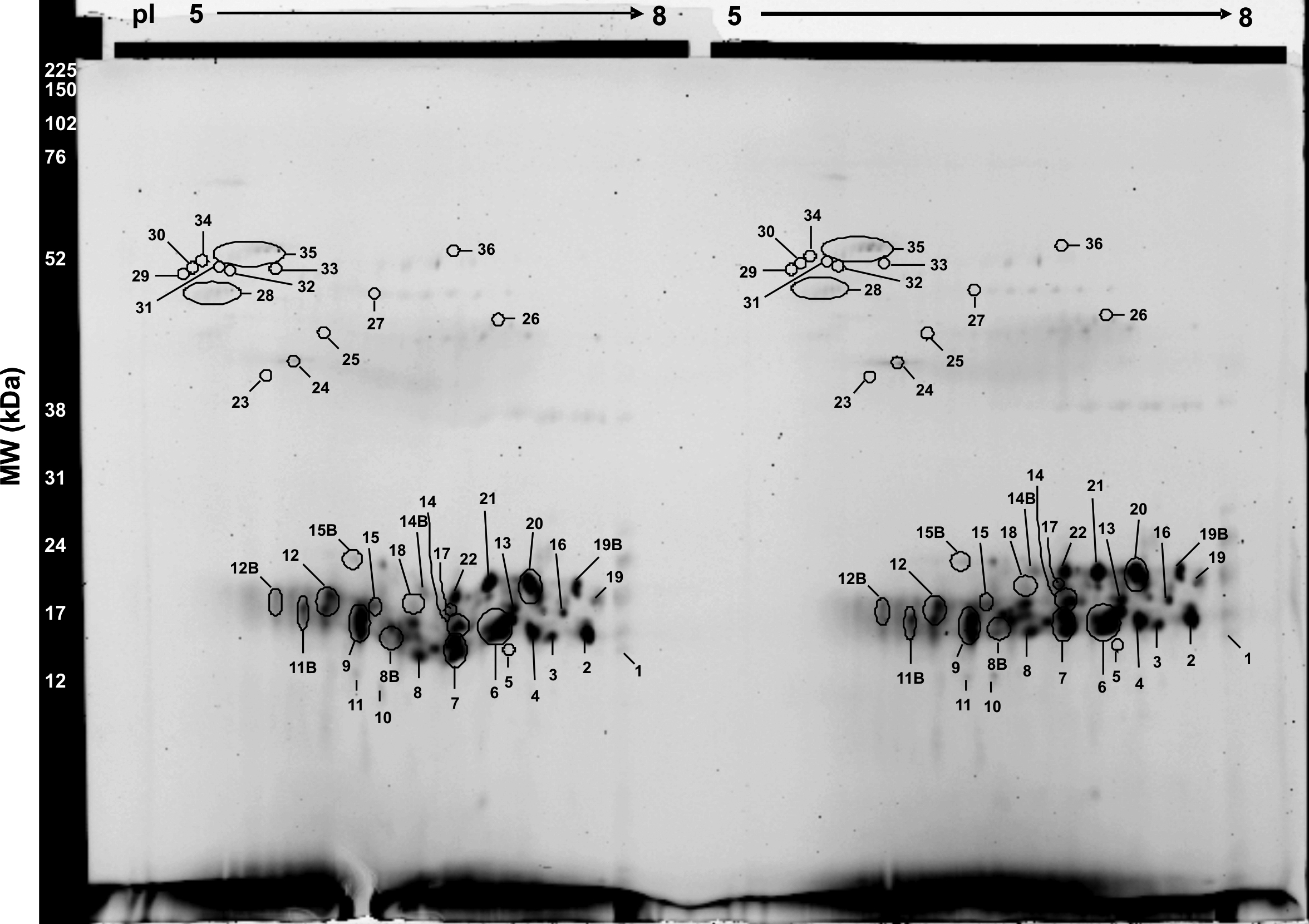 so corresponding spots were picked and pooled for identification.