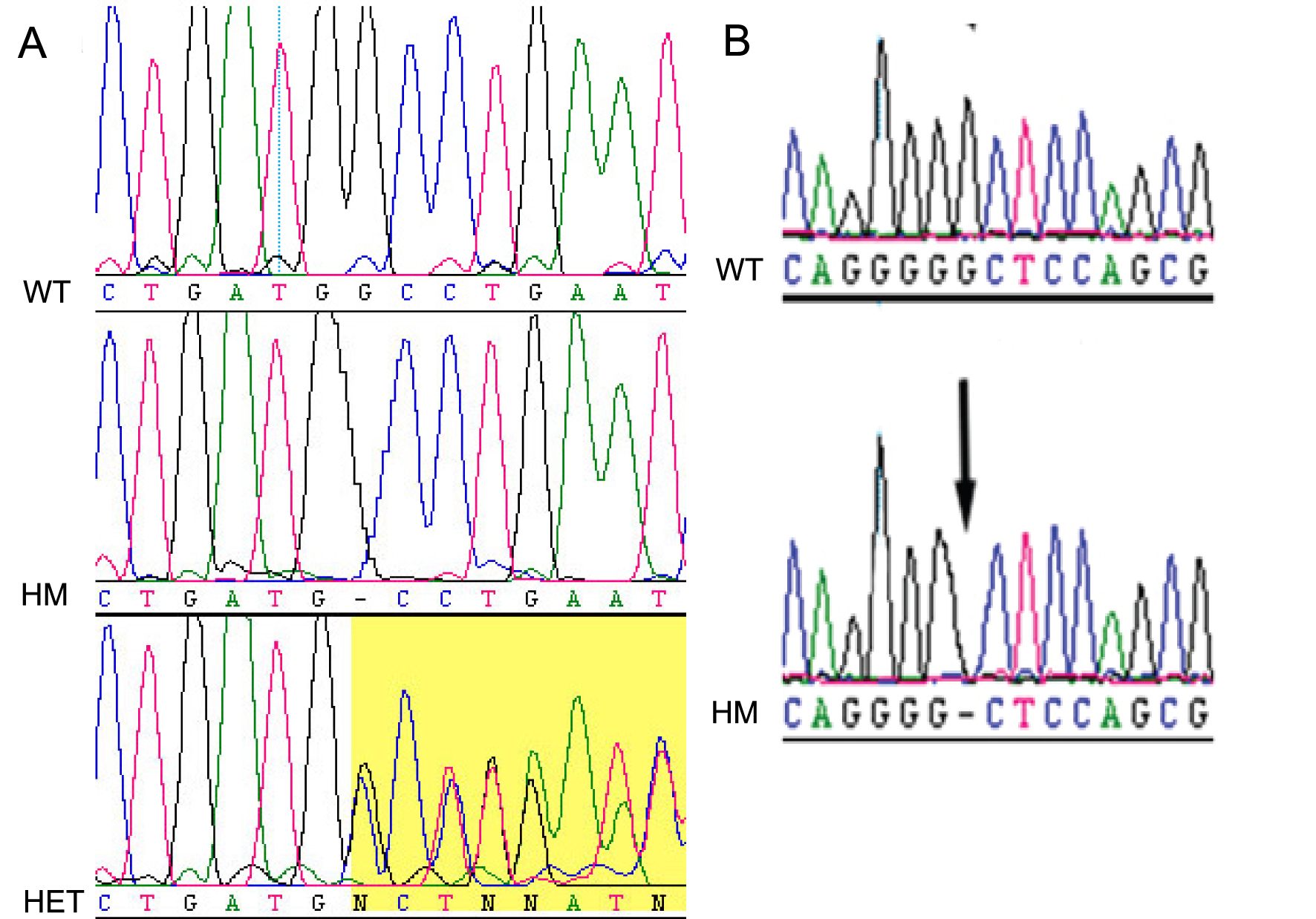 illustrates the index c.338delG mutation in family 1; the wild-type
