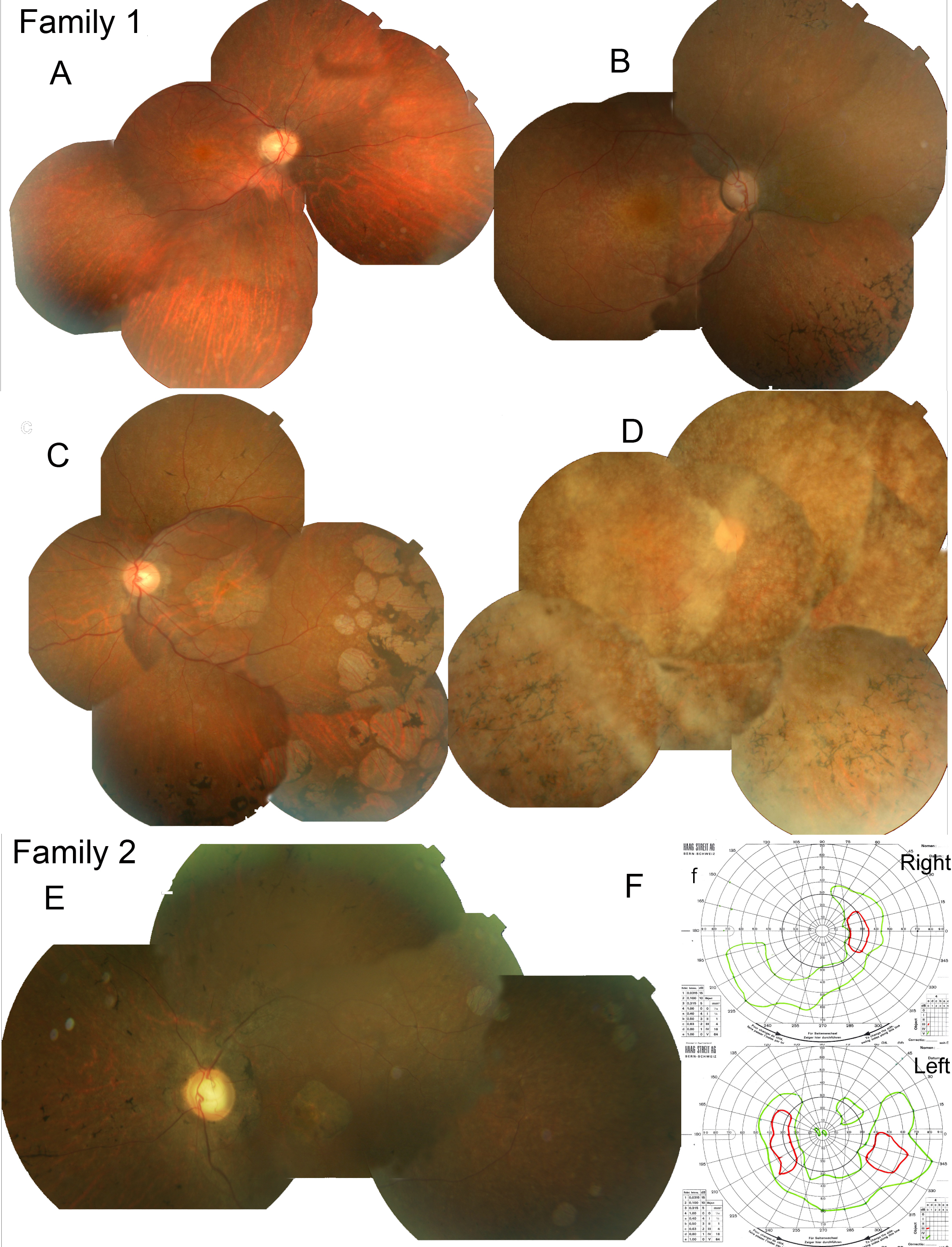 family 1; his visual acuity (VA) was 0.1 LogMAR with an