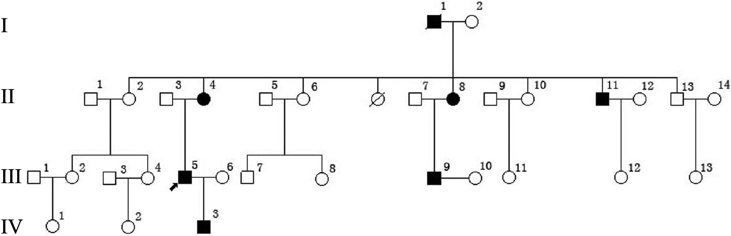 Reis-Bücklers dystrophy (RBCD). The circle indicates female, the square