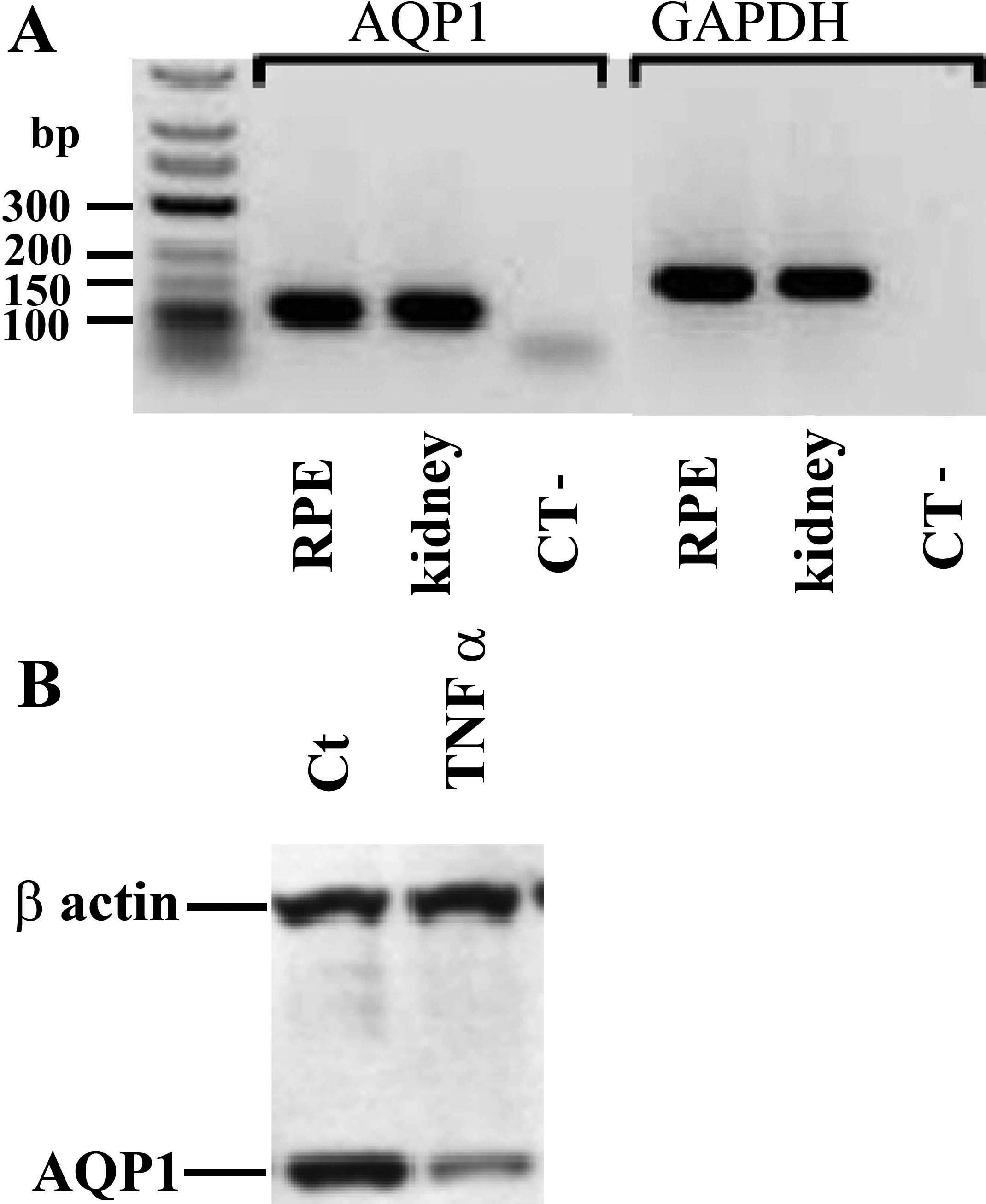 mouse B6-RPE07 cells. A: The presence of aquaporin 1 (AQP1) and