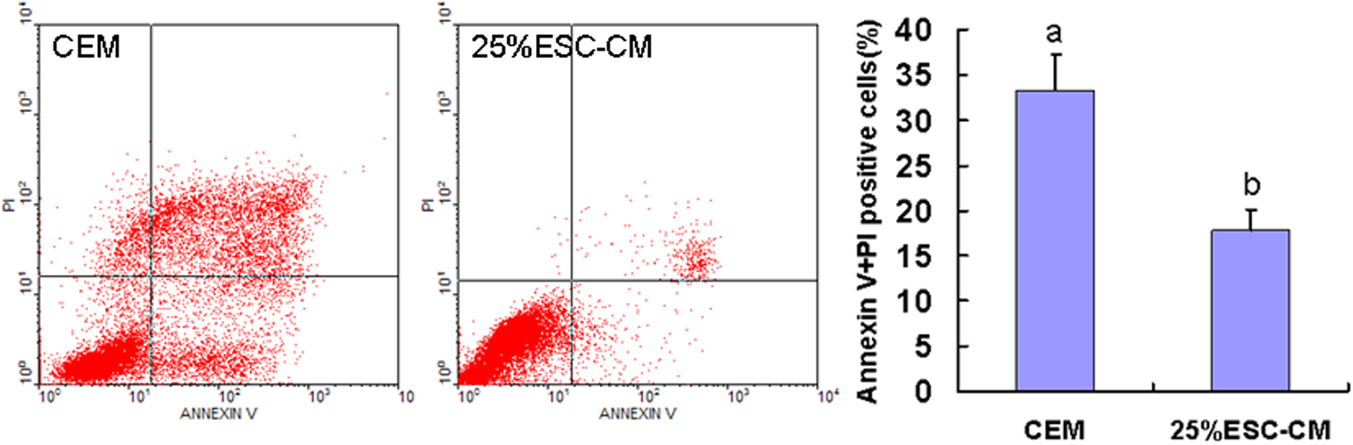 apoptosis/necrosis rate of passage 4 HCECs in 25%ESC-CM group was