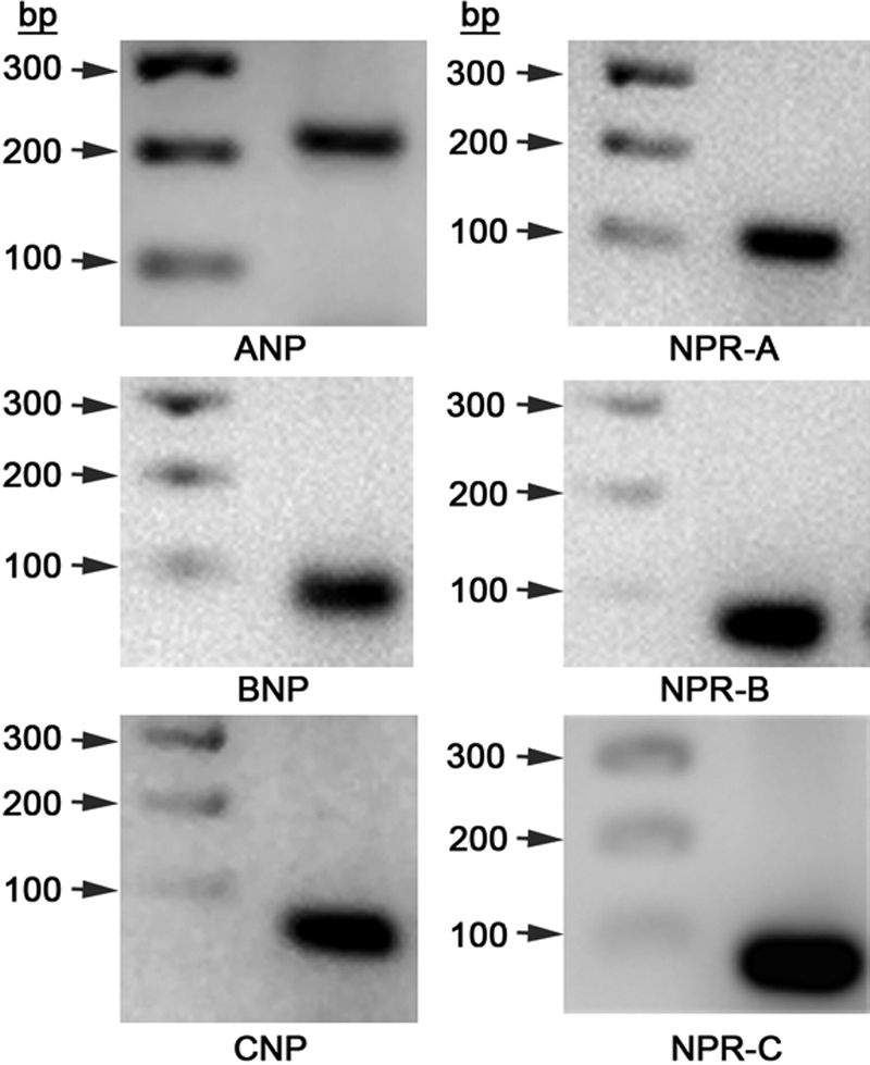 were run with the synthesized cDNA with the primer pairs for each of the three natriuretic peptides and natriuretic peptide