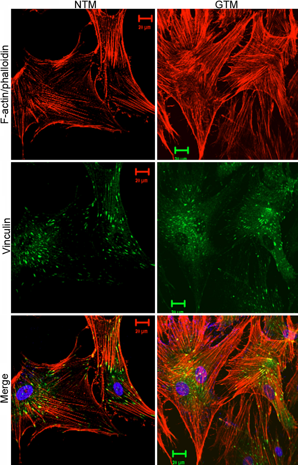 architecture and vinculin distribution compared to normal trabucular meshwork cells.