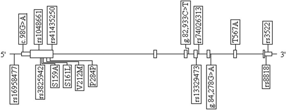 LOXL1 sequence variants in black South African population. Known SNPs are identified by their rs number designation. Novel coding