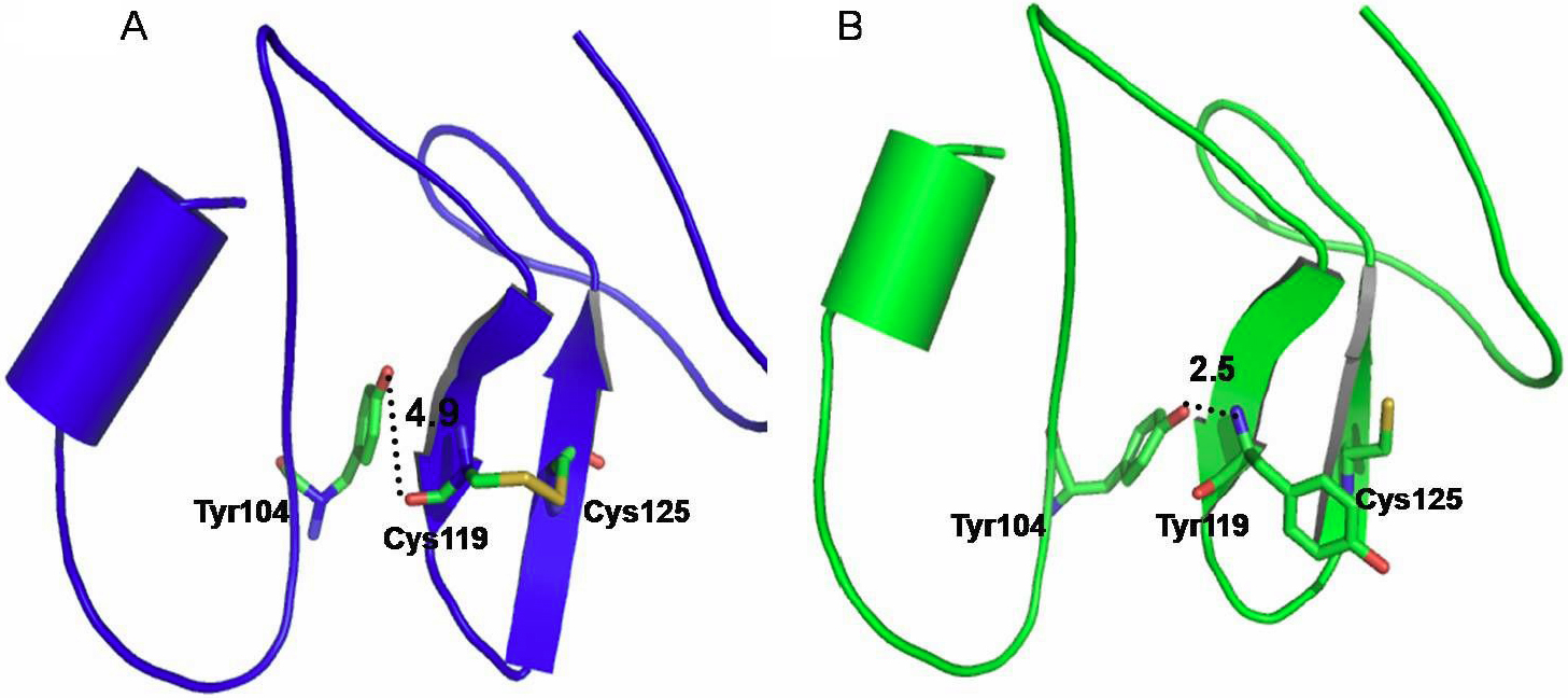 wild type (4.9Ǻ) and mutant (2.5 Ǻ) are indicated. The change in
