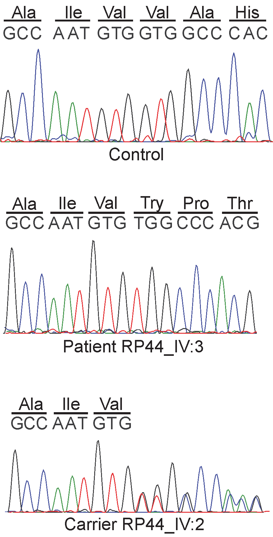nucleotide-gated channel beta-3 (CNGB3) in family RP44. Sequence